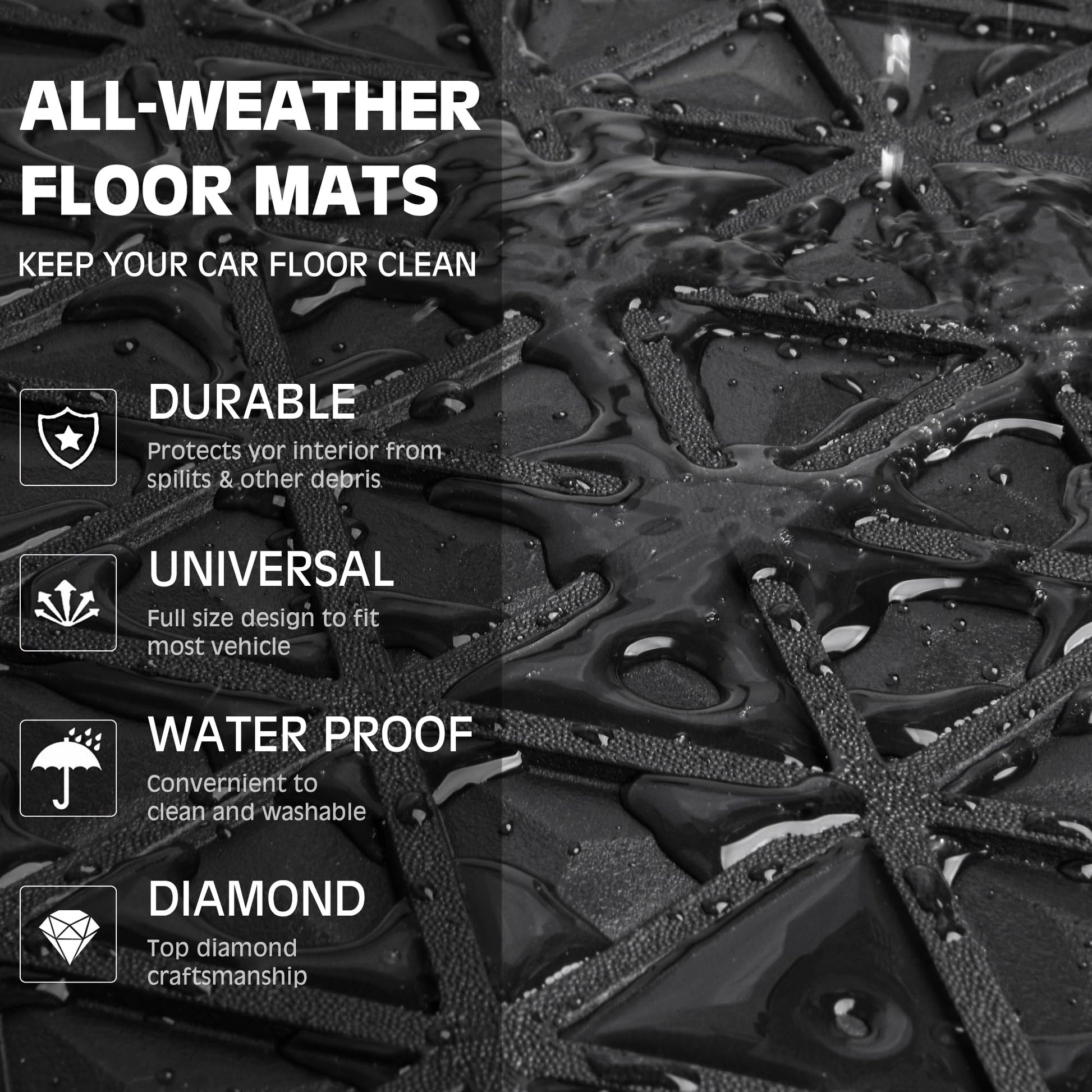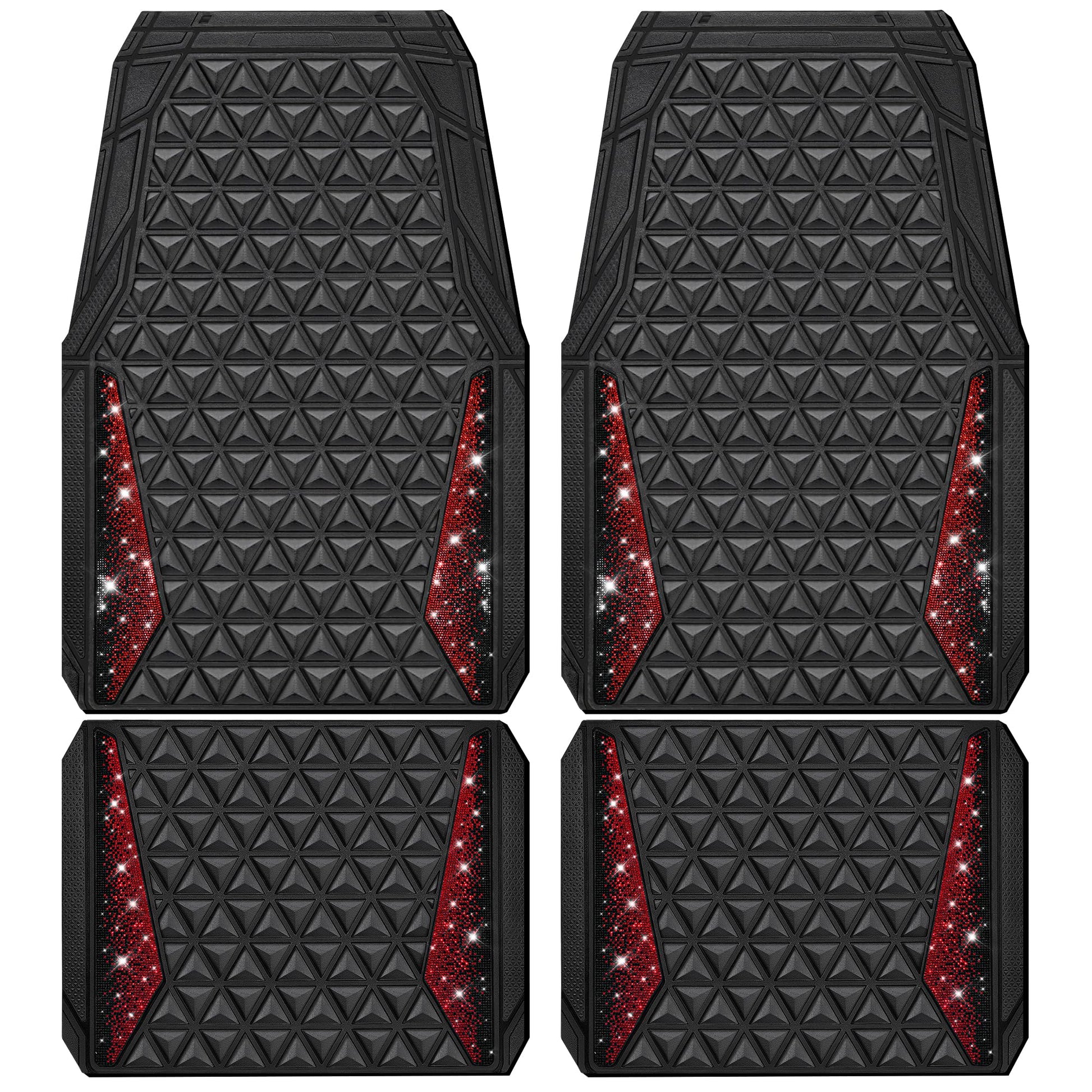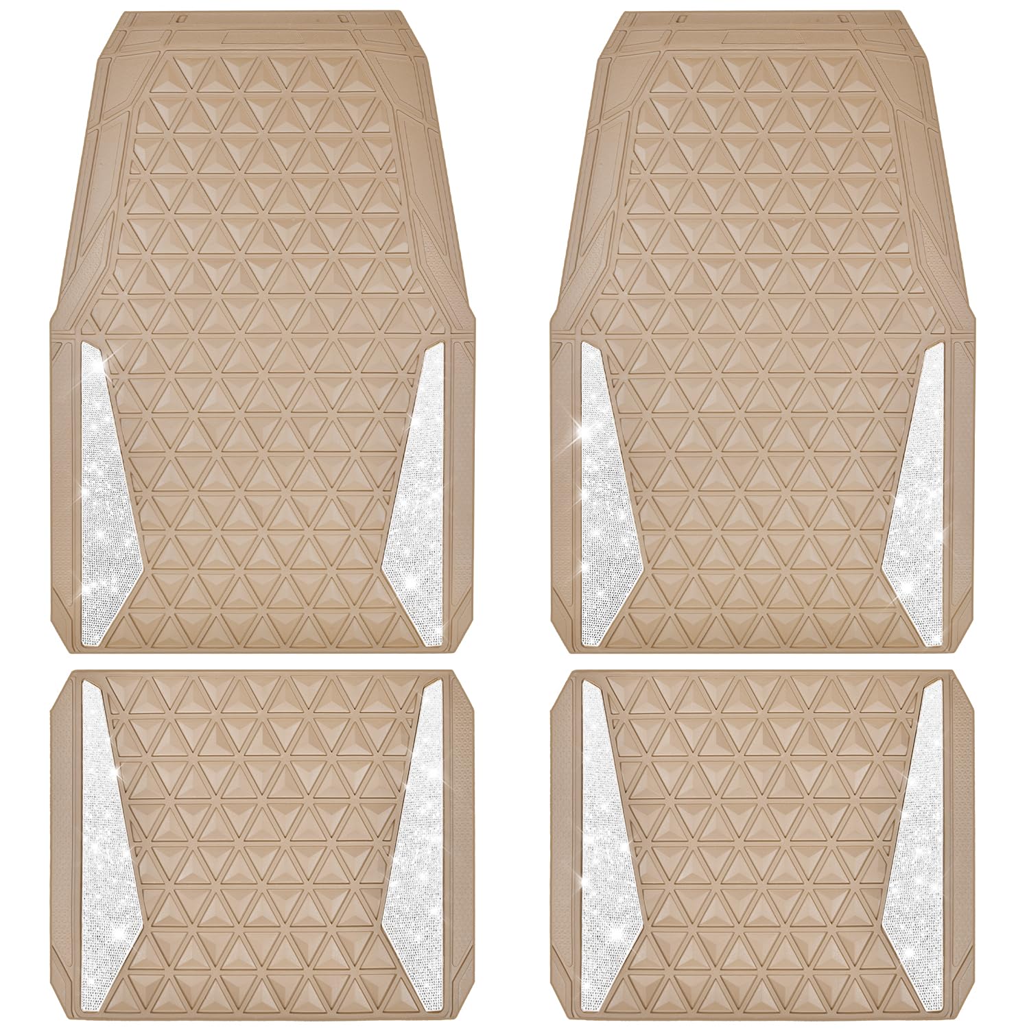 CAR PASS Bling Car Mats Diamond Rubber Floor Mats Full Set Anti-Slip 3D Rhombus Waterproof Trim to Fit Liner Universal Glitter Crystal Sparkly Shining Rhinestone Girl Women SUV Sedan Van, Black Silver