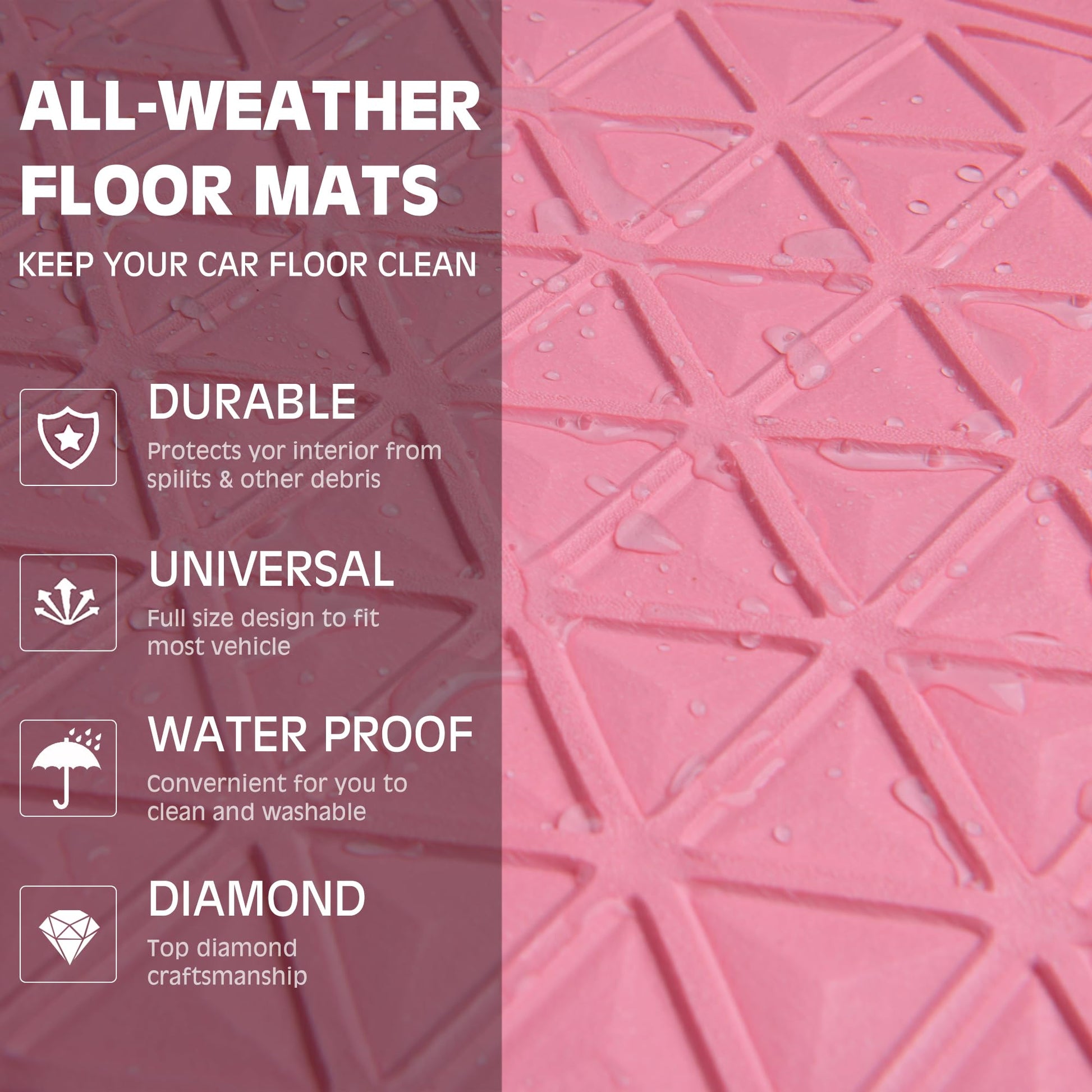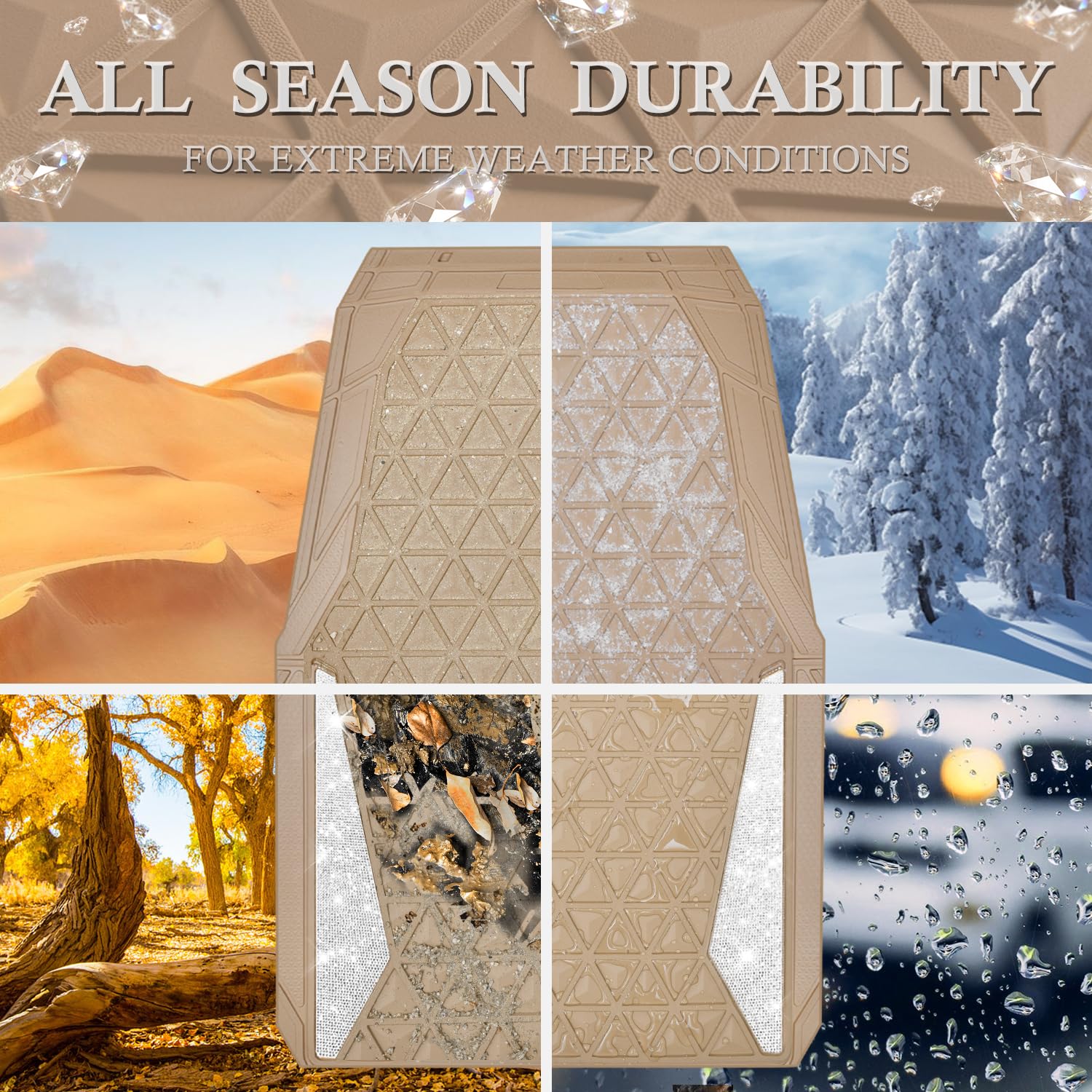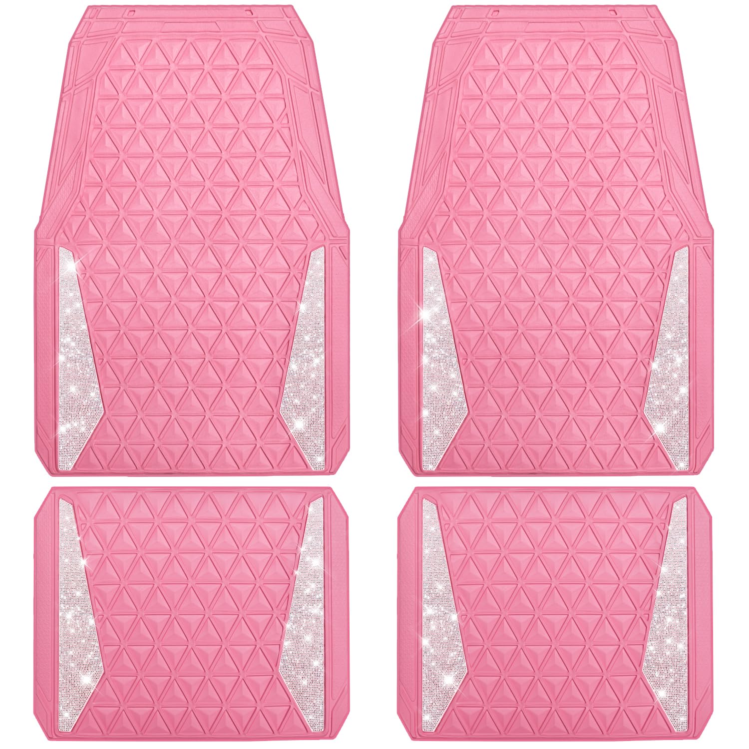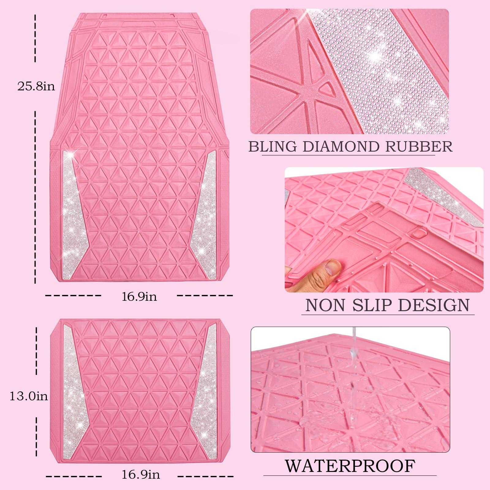 CAR PASS Bling Car Mats Diamond Rubber Floor Mats Full Set Anti-Slip 3D Rhombus Waterproof Trim to Fit Liner Universal Glitter Crystal Sparkly Shining Rhinestone Girl Women SUV Sedan Van, Black Silver