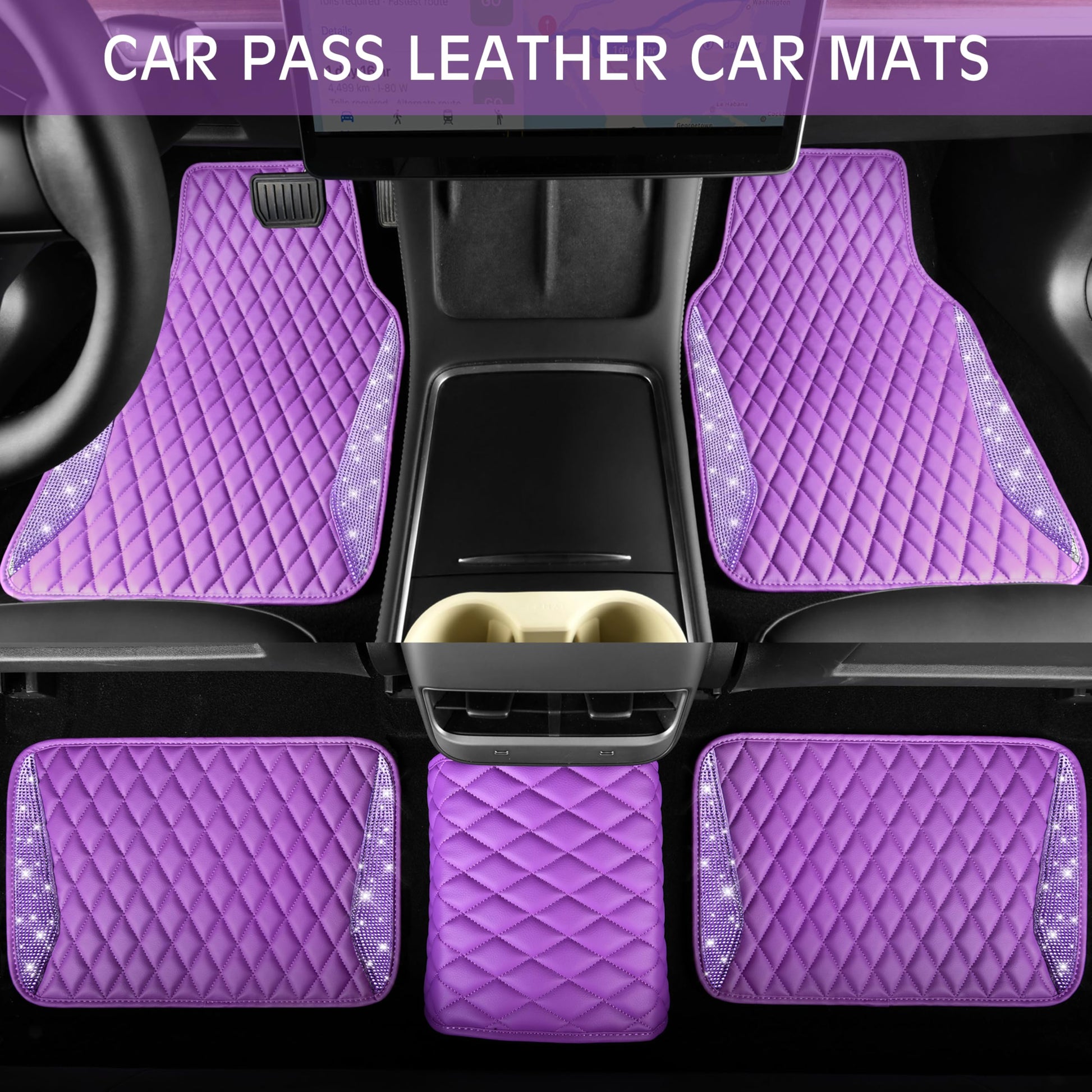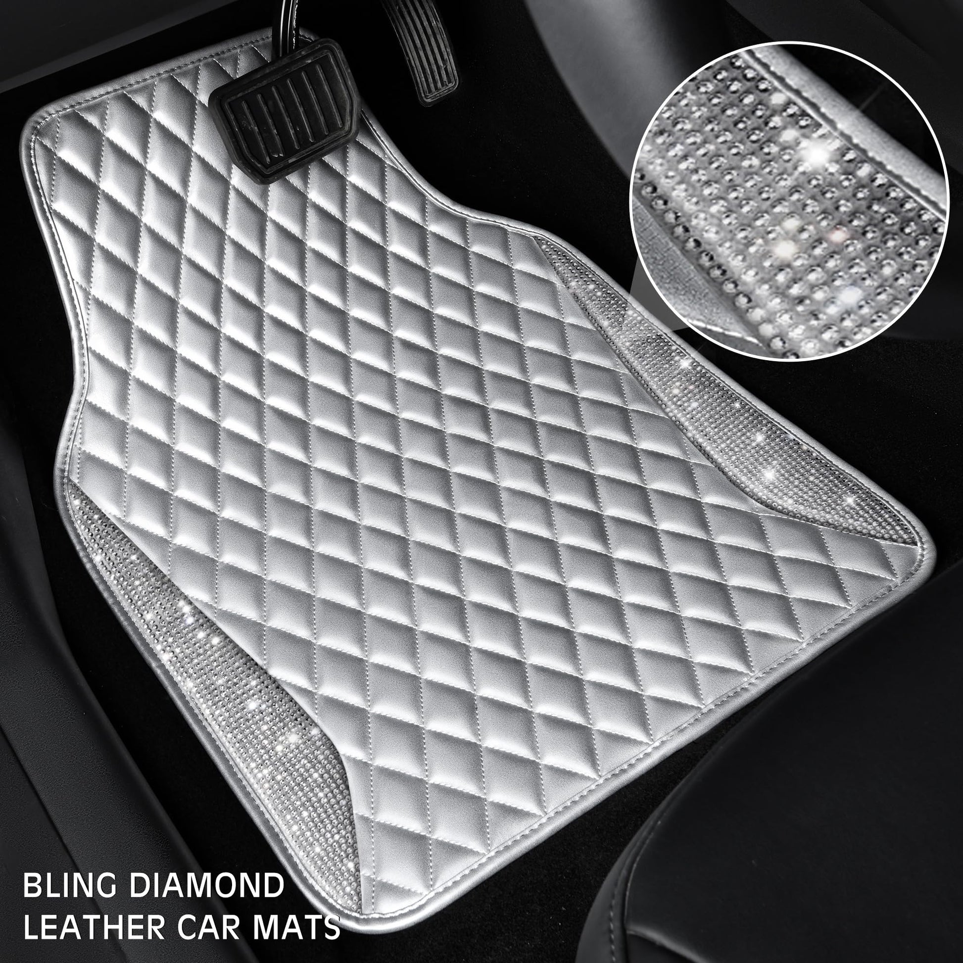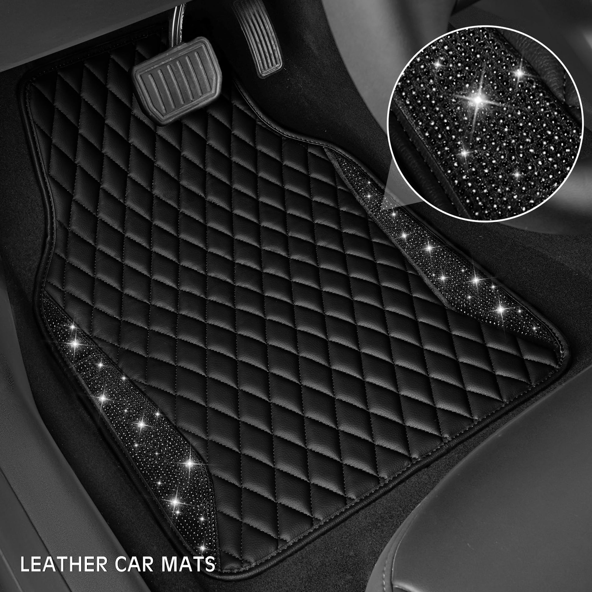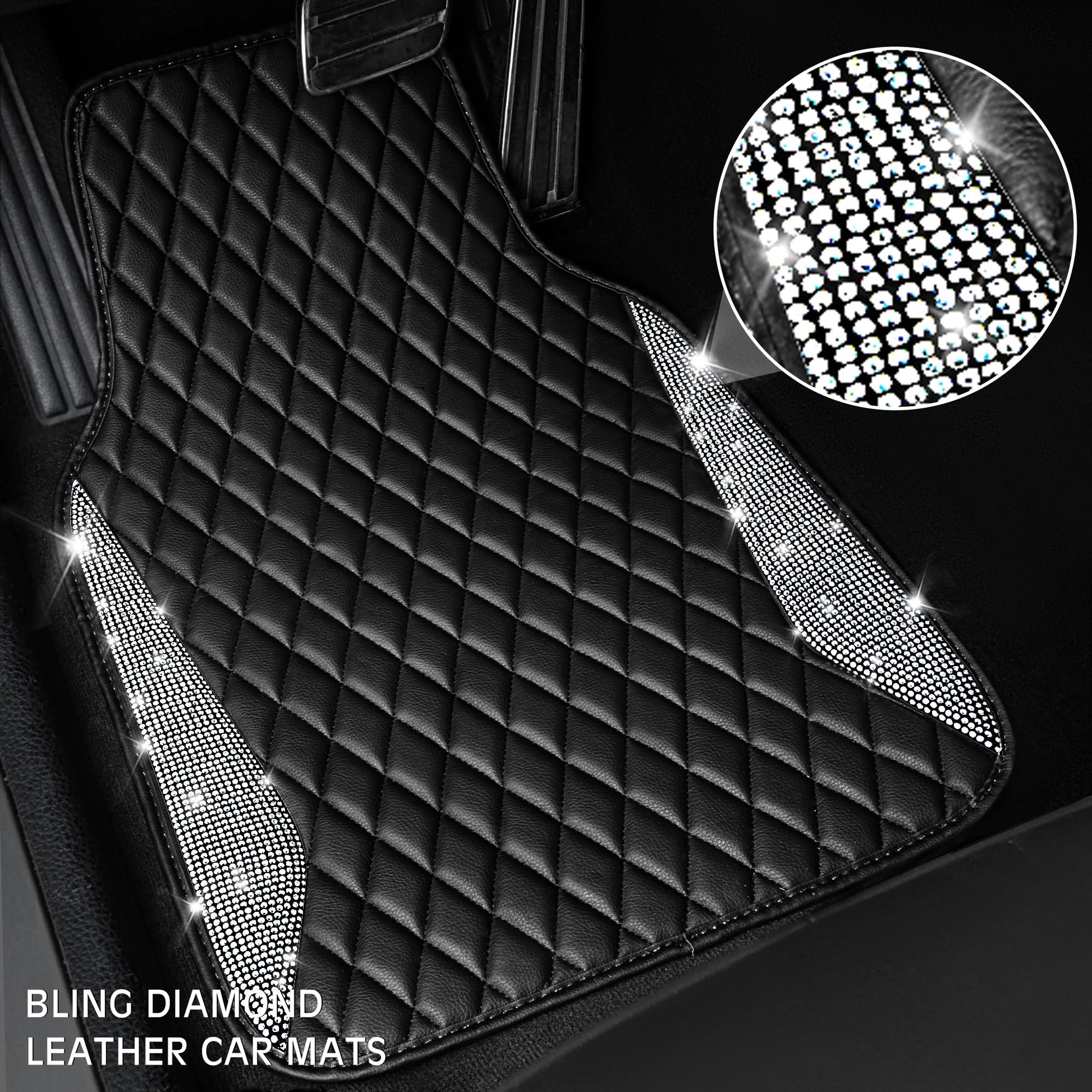 CAR PASS Bling Leather Car Mats Shining Diamond Floor Mats 5 pcs Waterproof for Girl Women