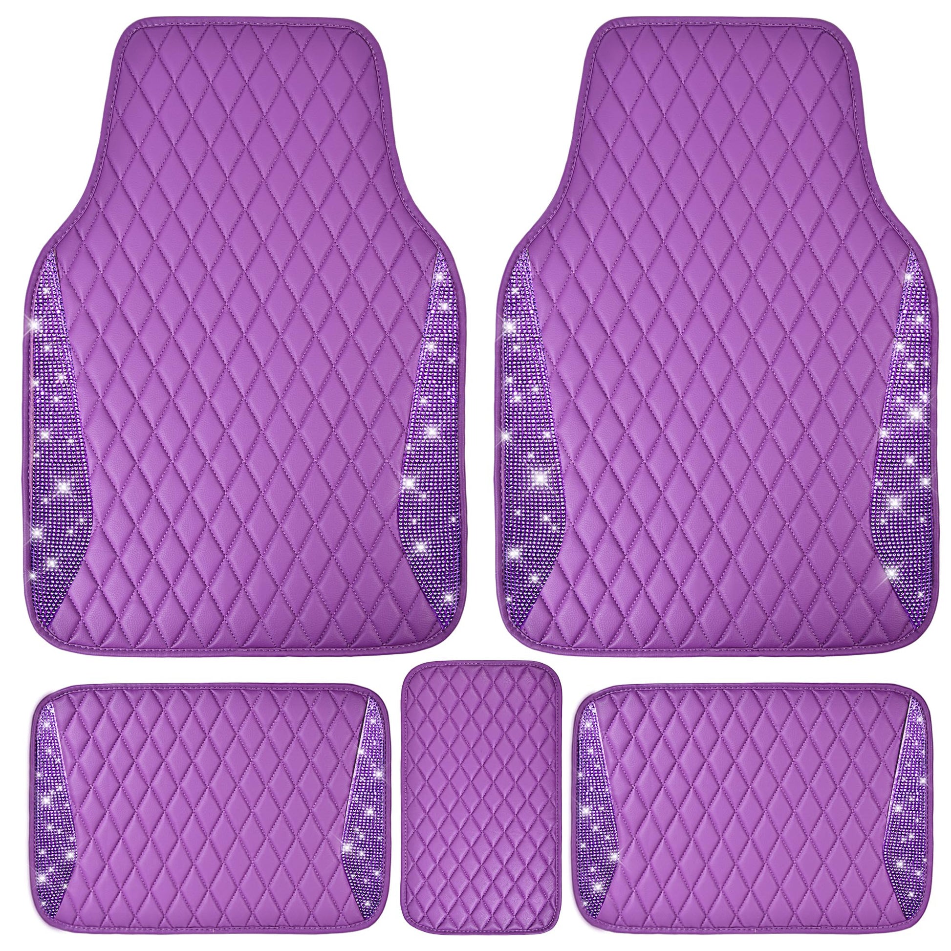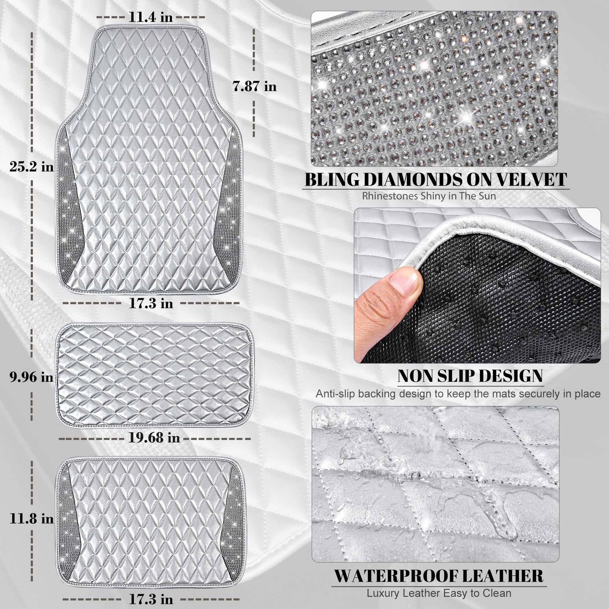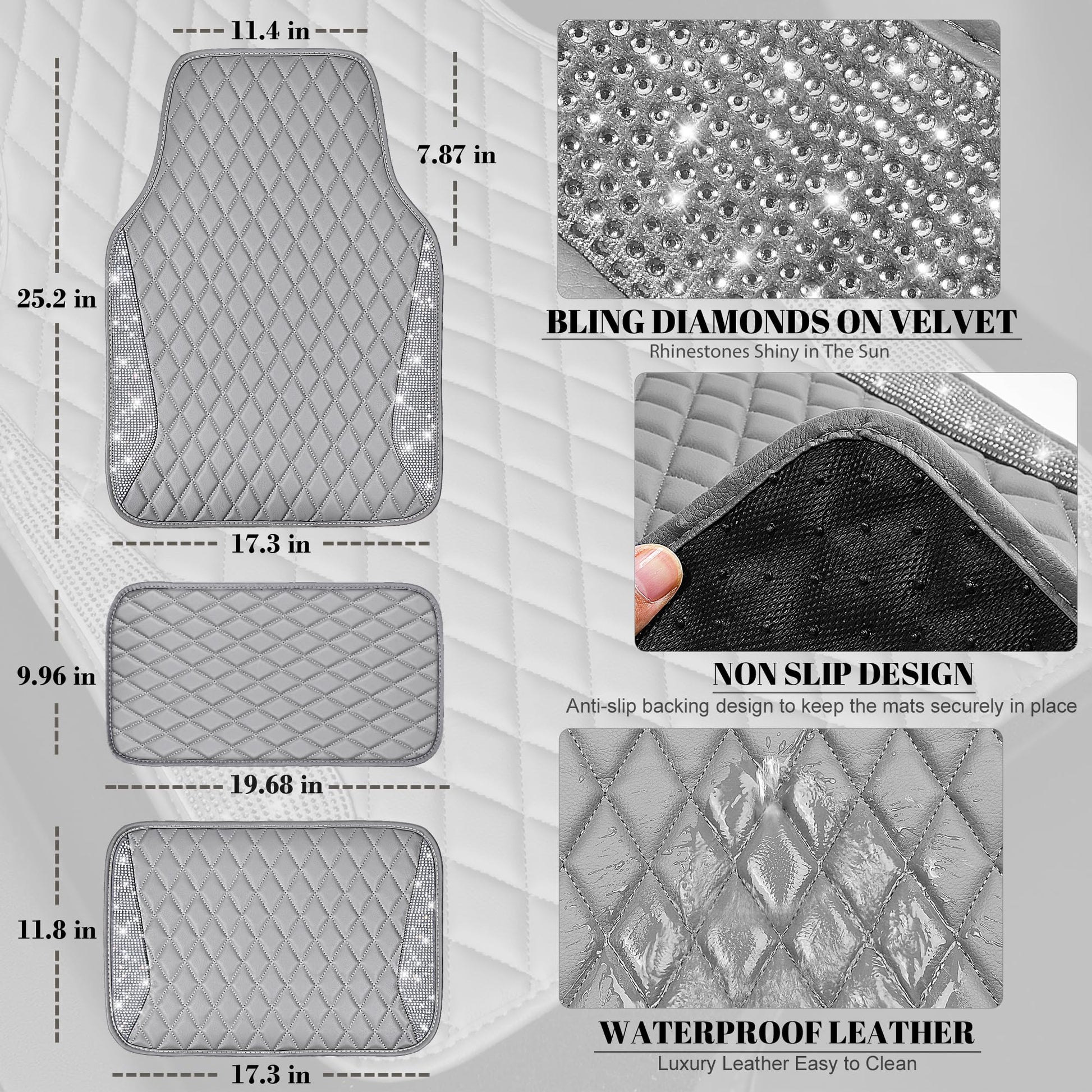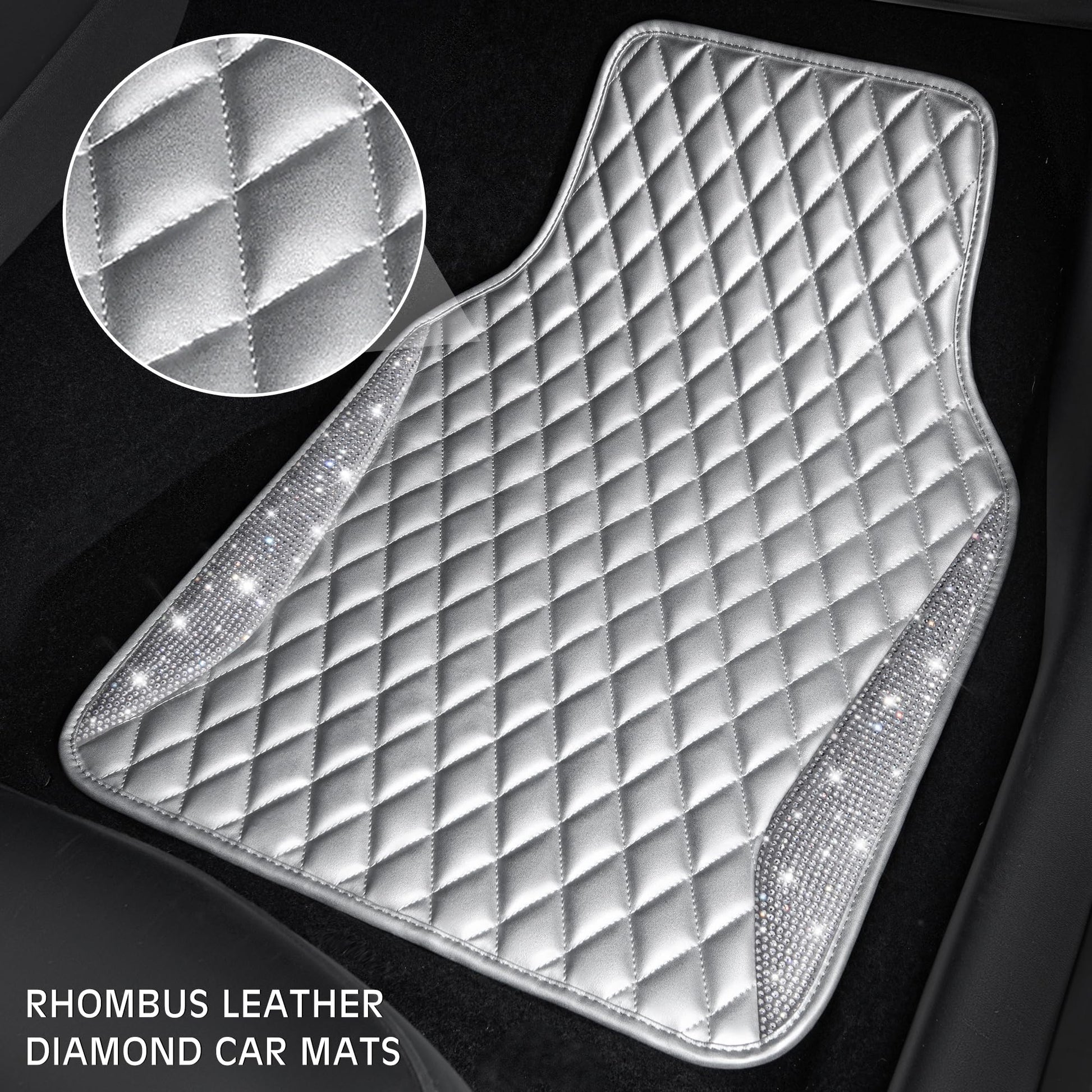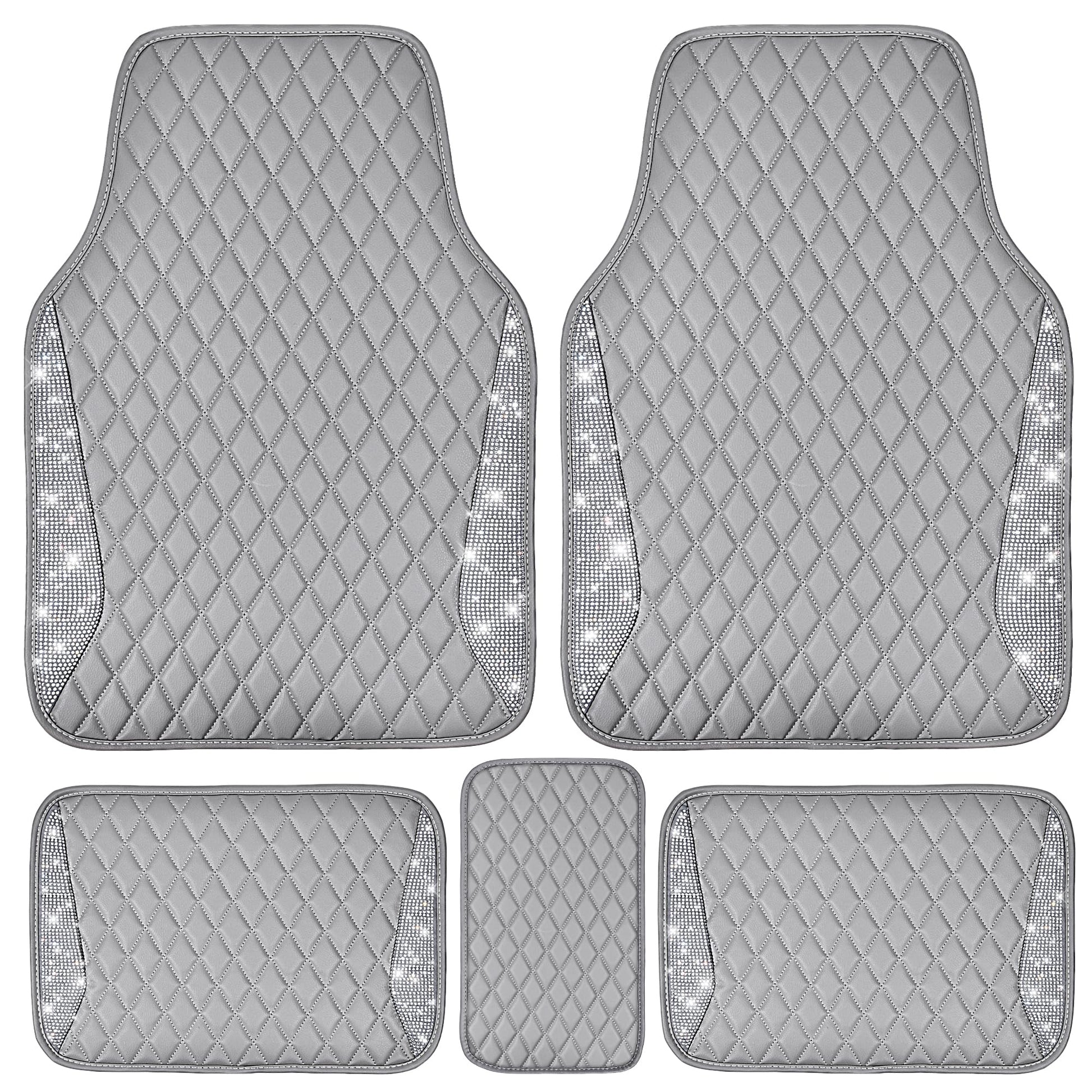 CAR PASS Bling Leather Car Mats Shining Diamond Floor Mats 5 pcs Waterproof for Girl Women