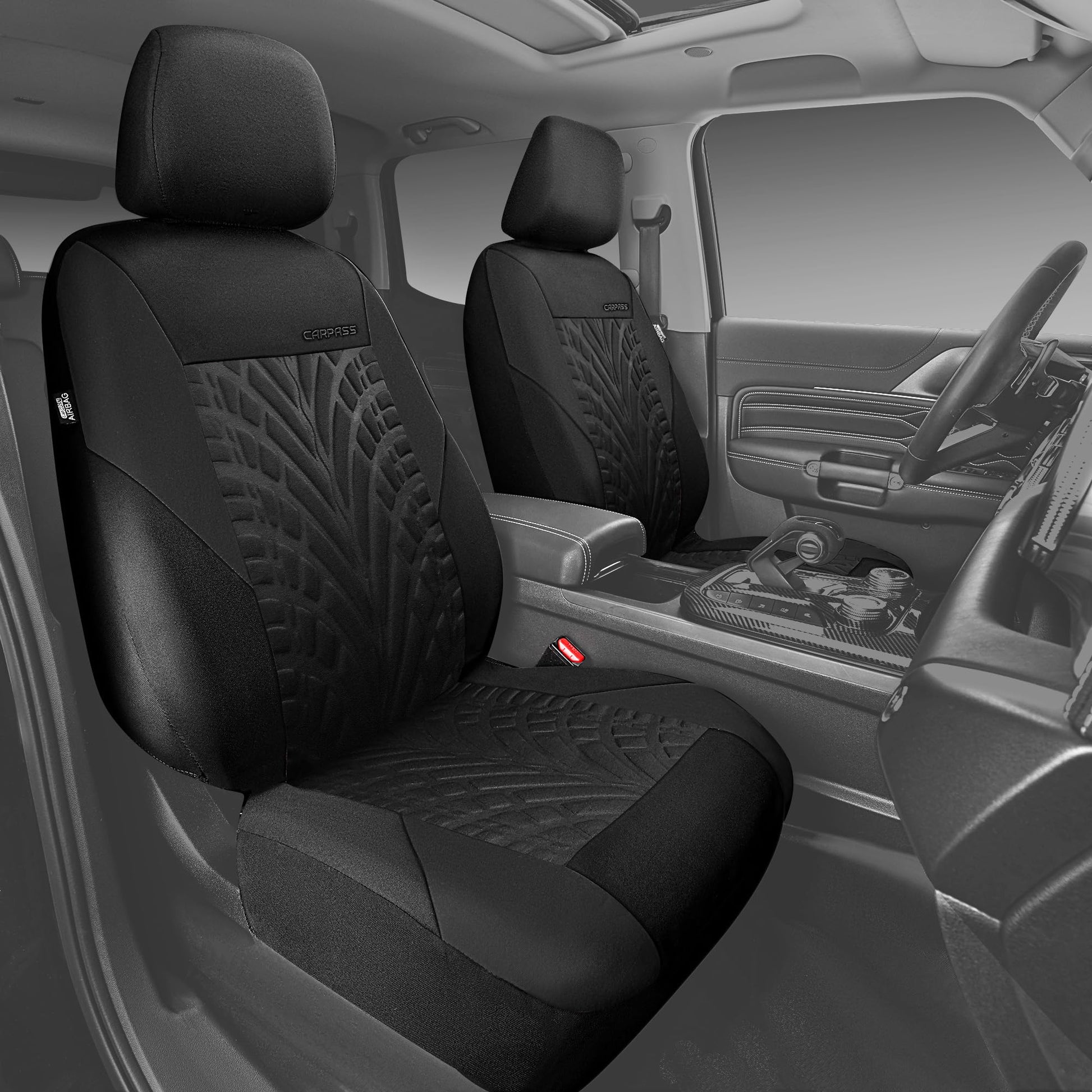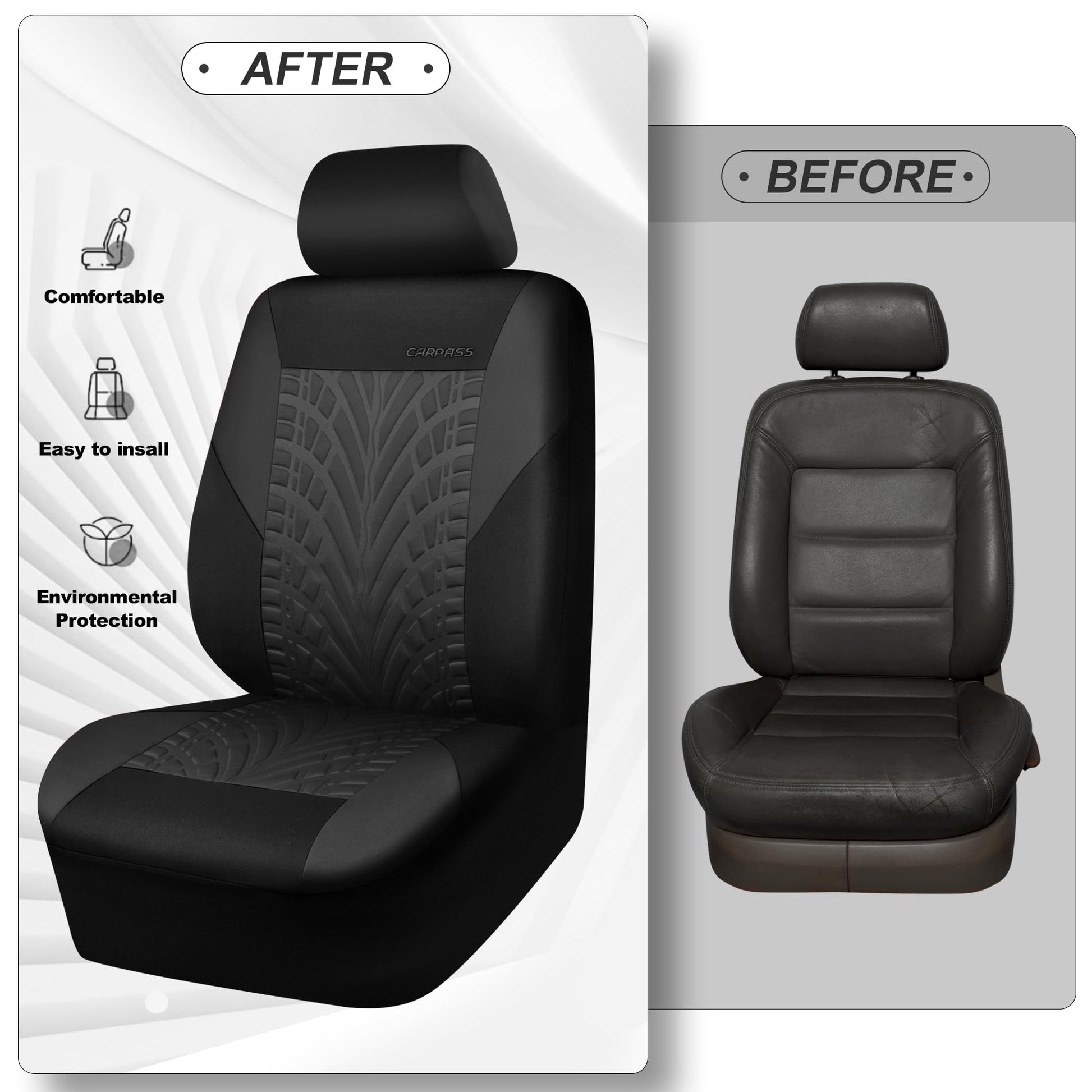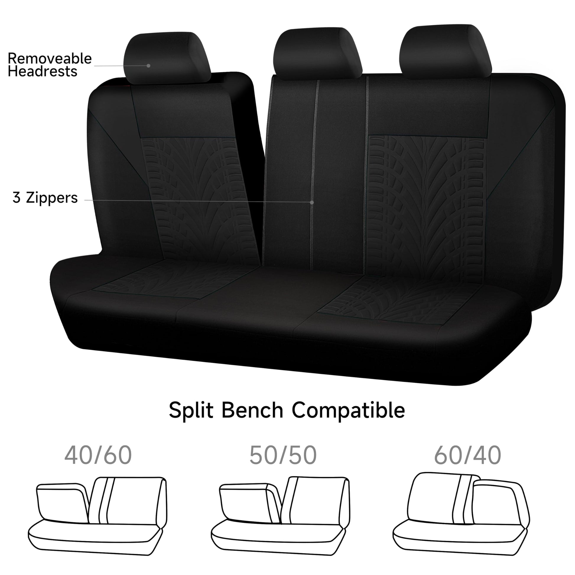CAR PASS Car Seat Covers Full Sets, Front & Split Rear Bench for Car, 3D Tyre Embossed Automotive Interior Covers, Airbag Compatible, Quick Setup Universal Fit Seat Covers for Car, SUV(All Black)