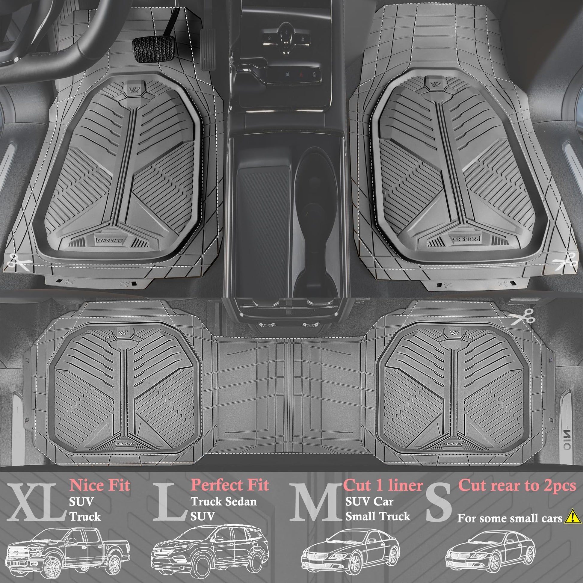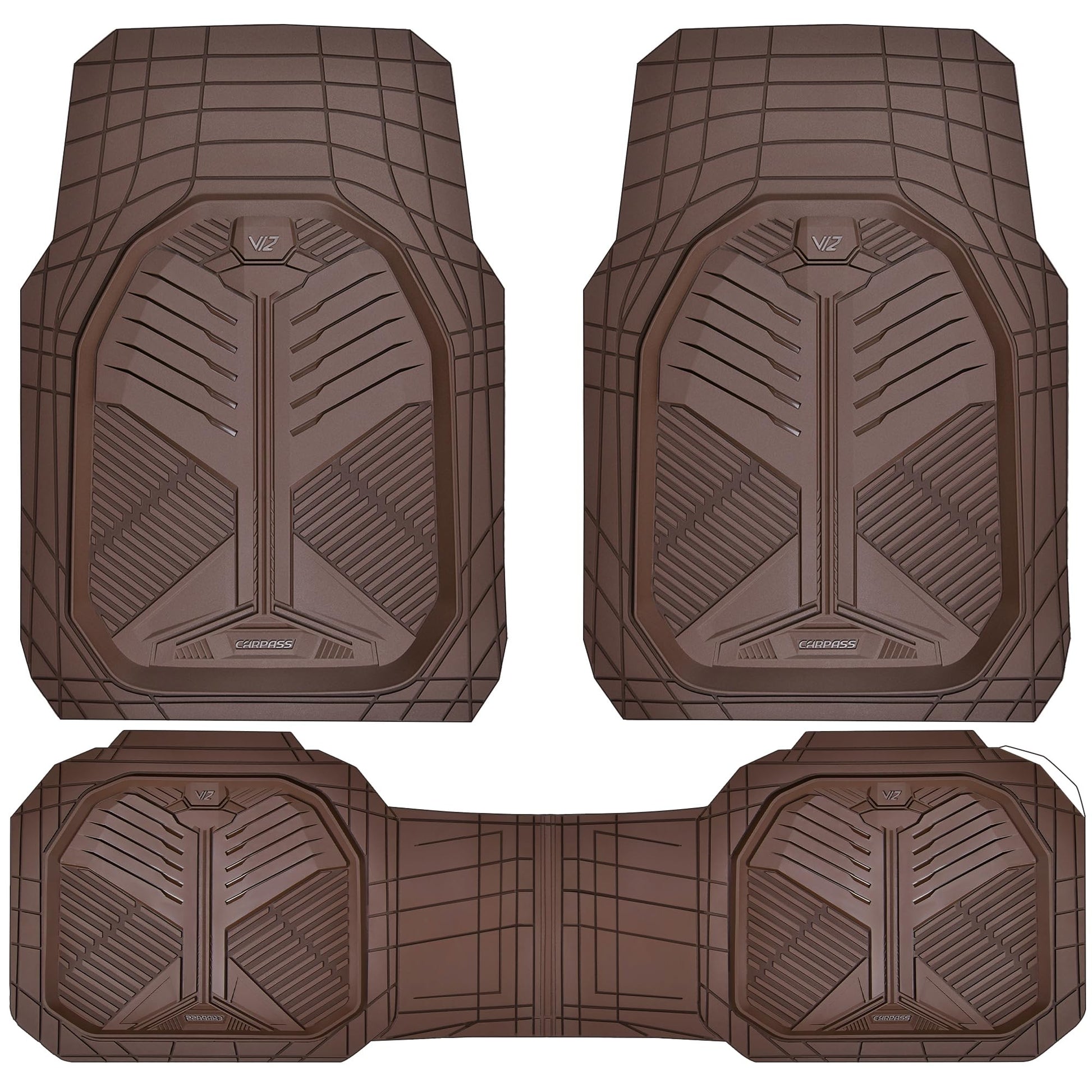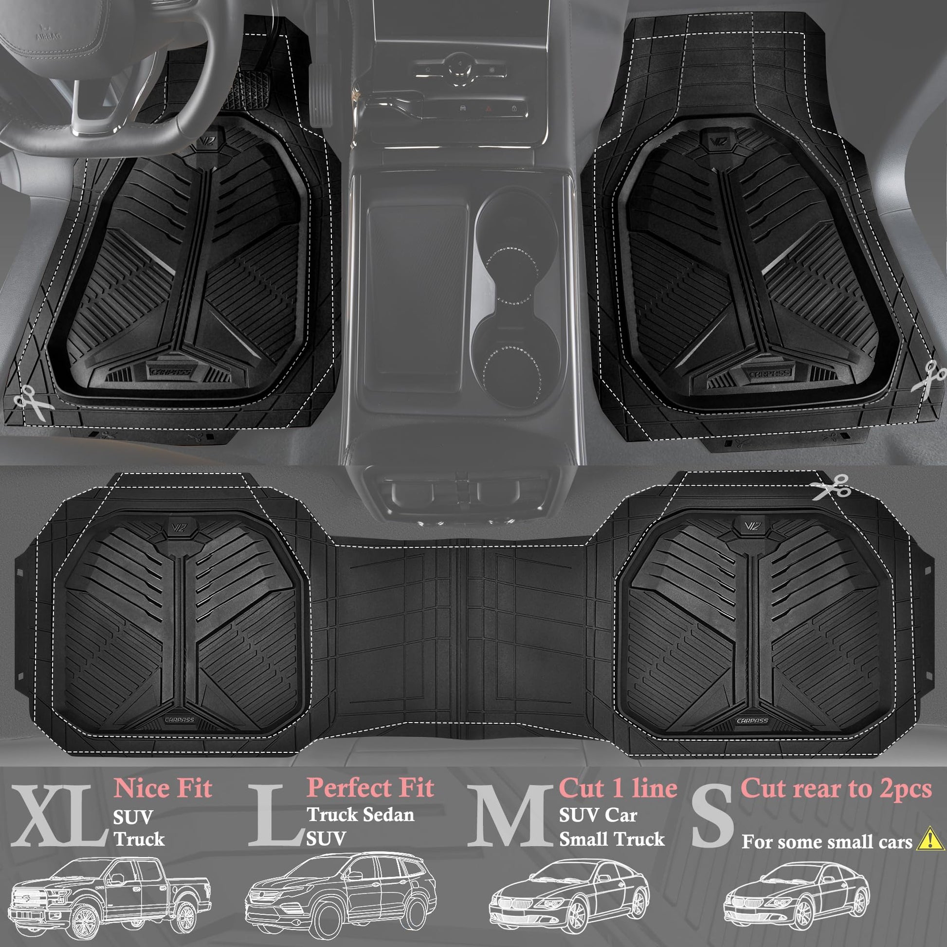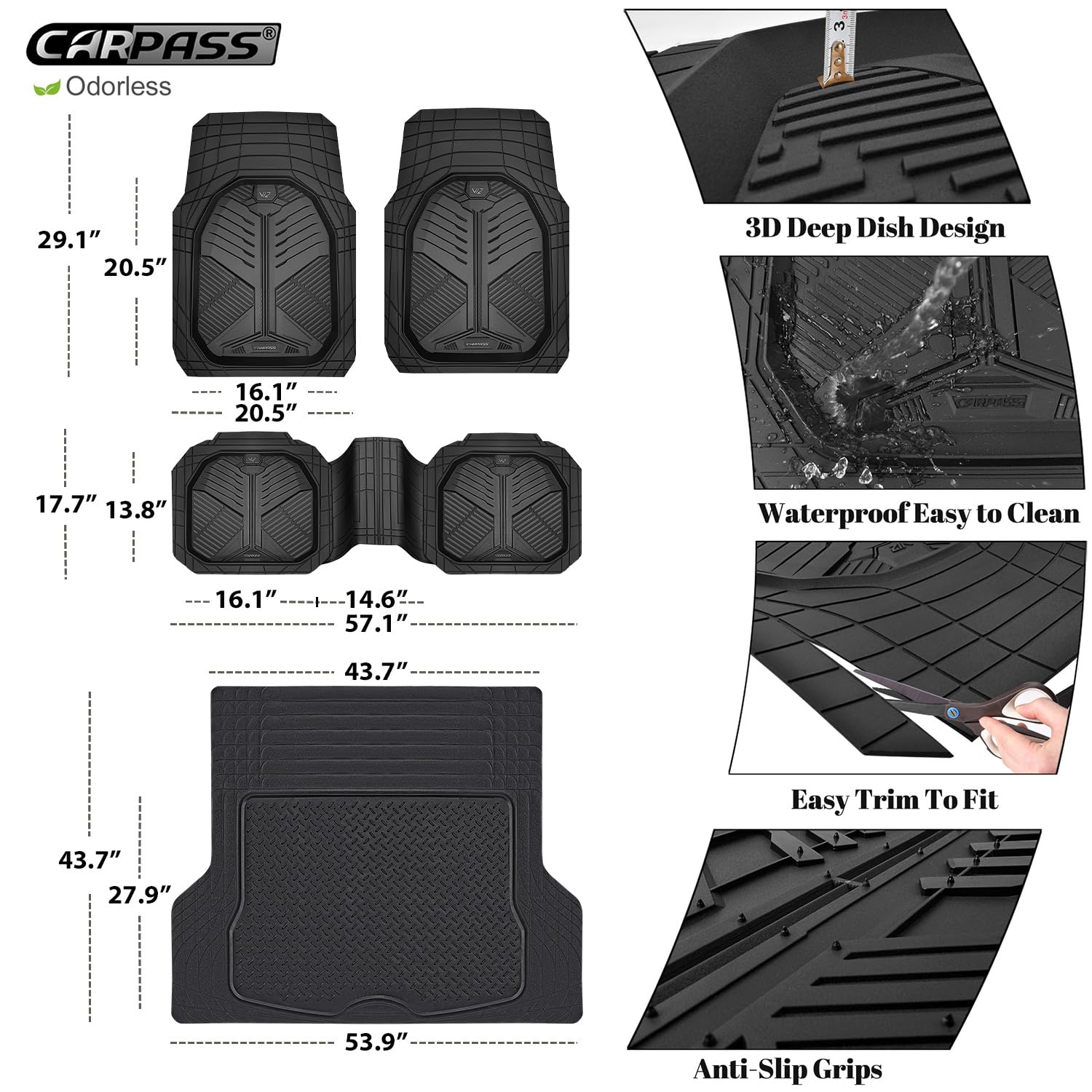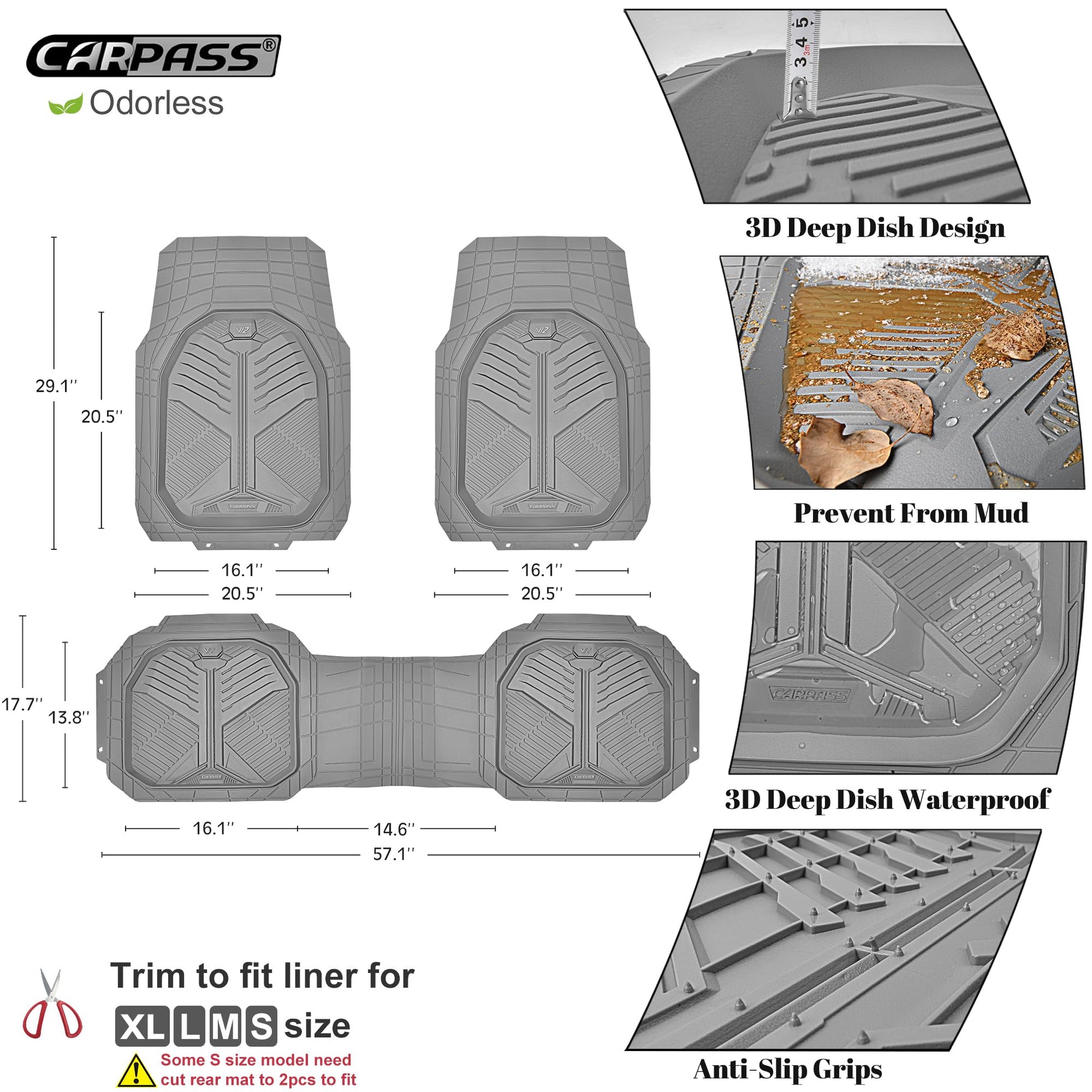 CAR PASS Heavy Duty Rubber Car Mats, Deep-Dish Odorless Car Floor Mats All Weather, Universal Trim-to-Fit for SUVs Trucks Sedans, Waterproof Anti-Slip, 3 Pieces V12 Black