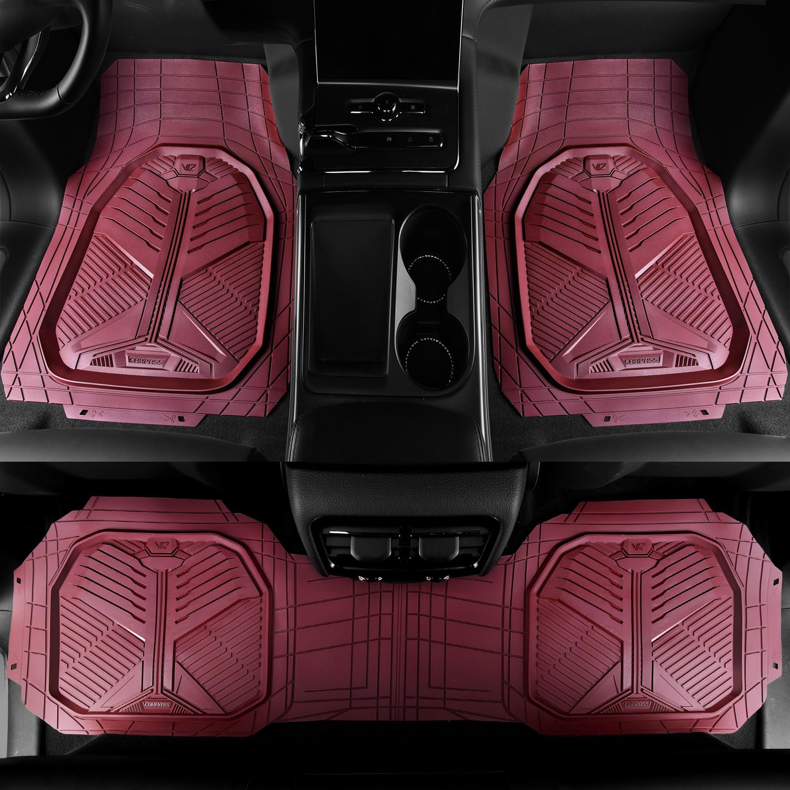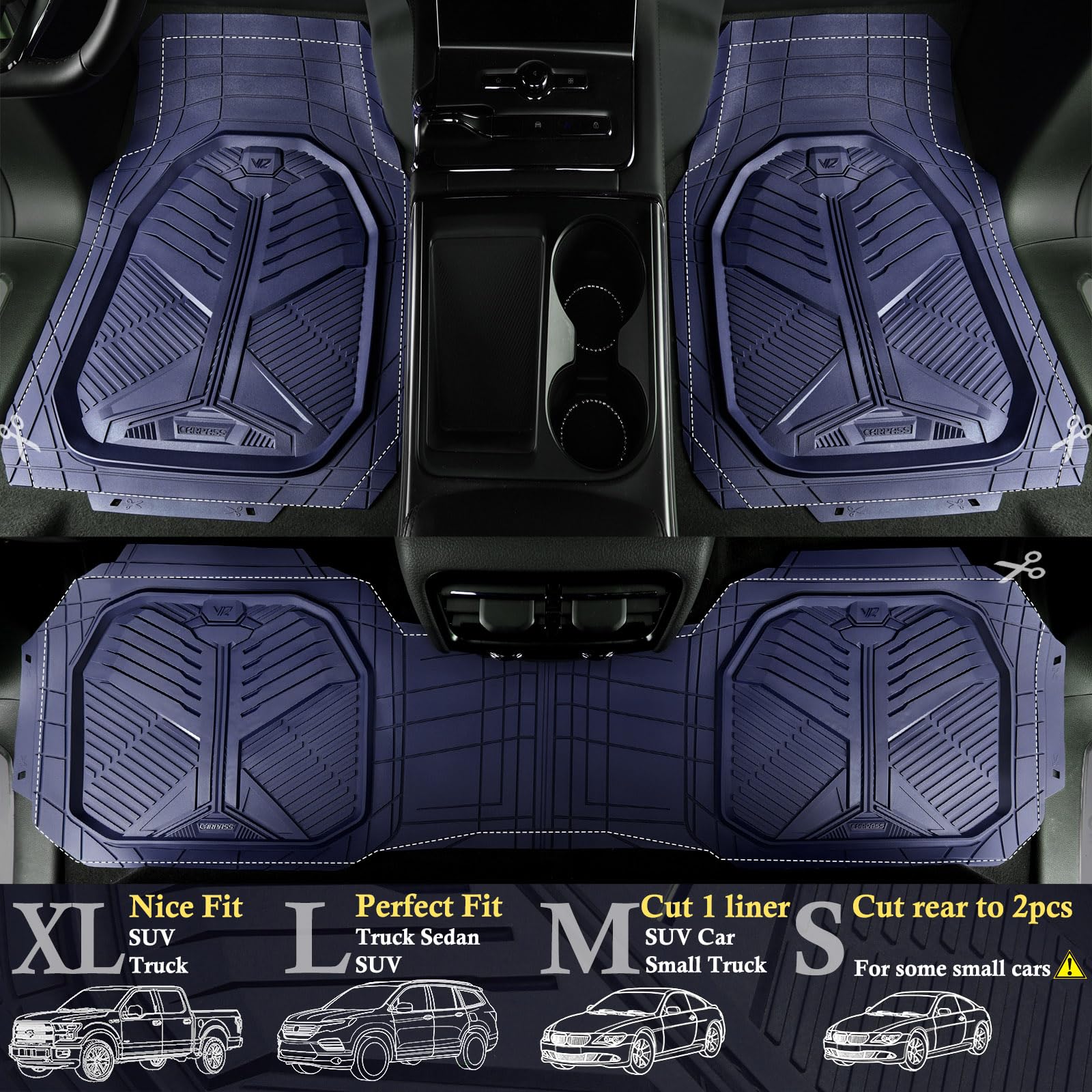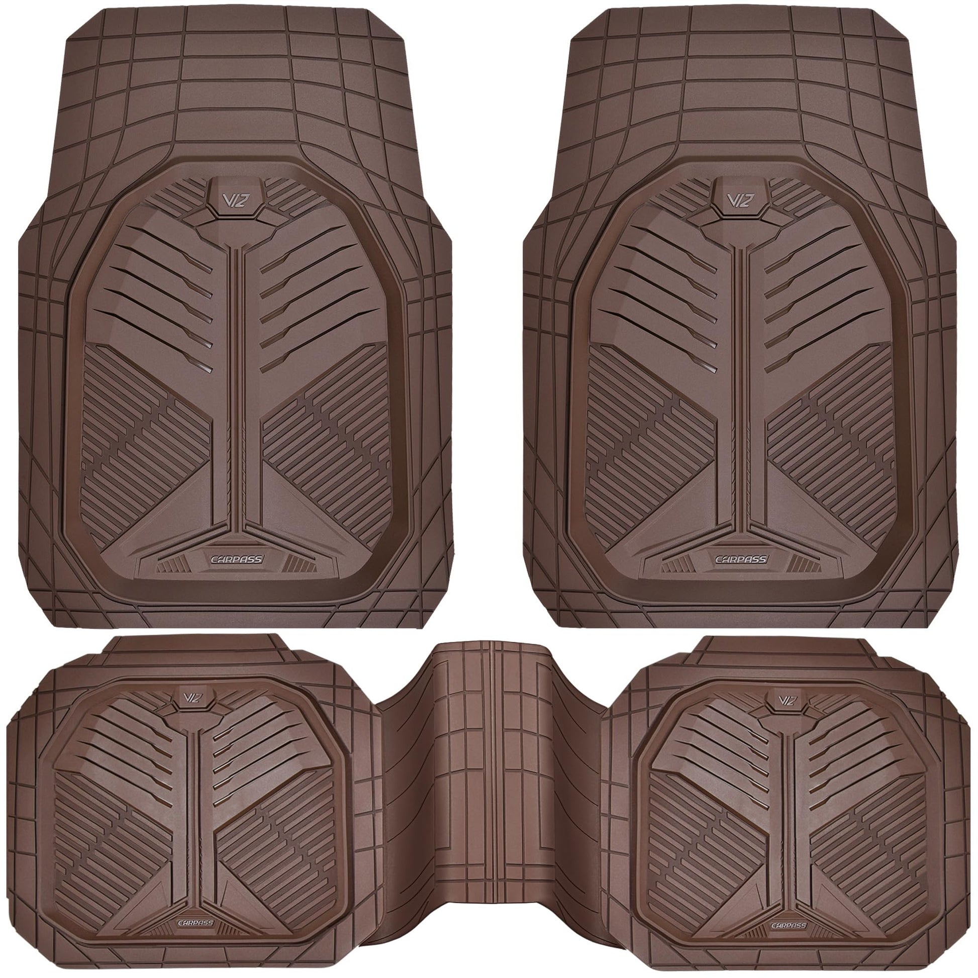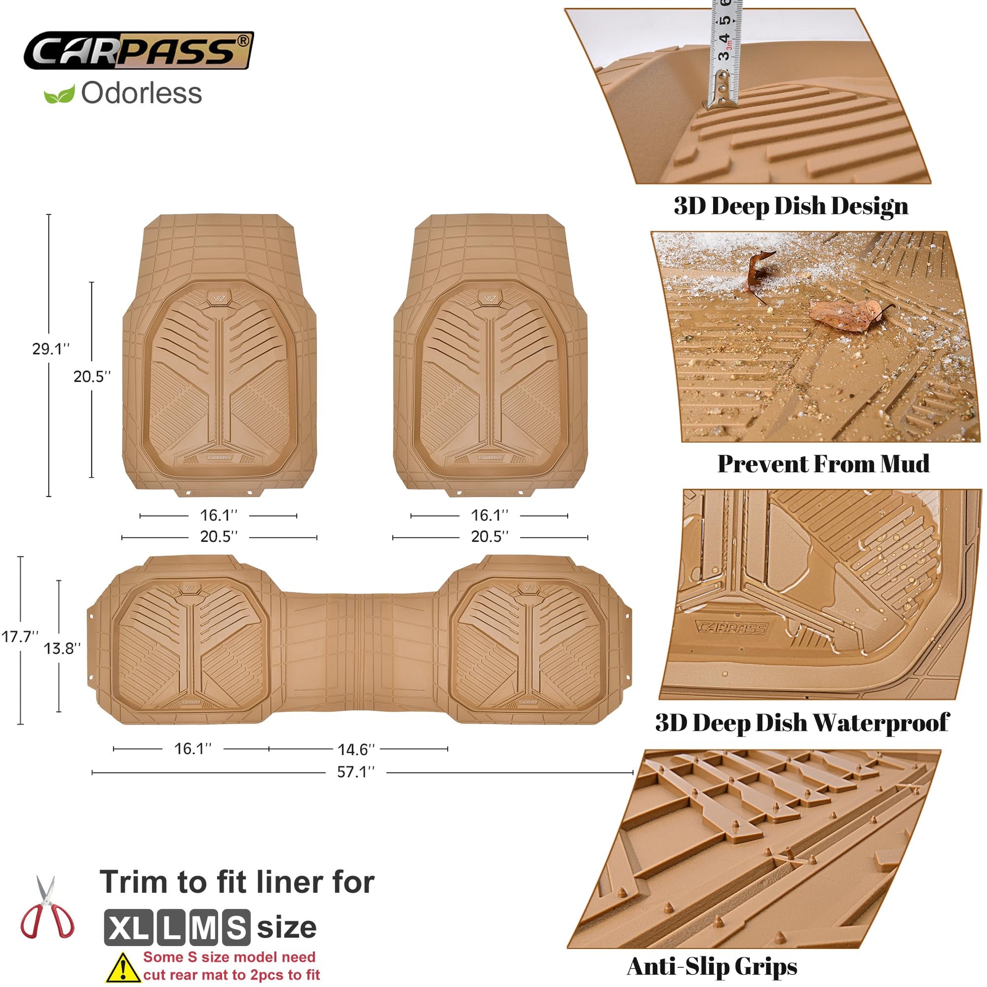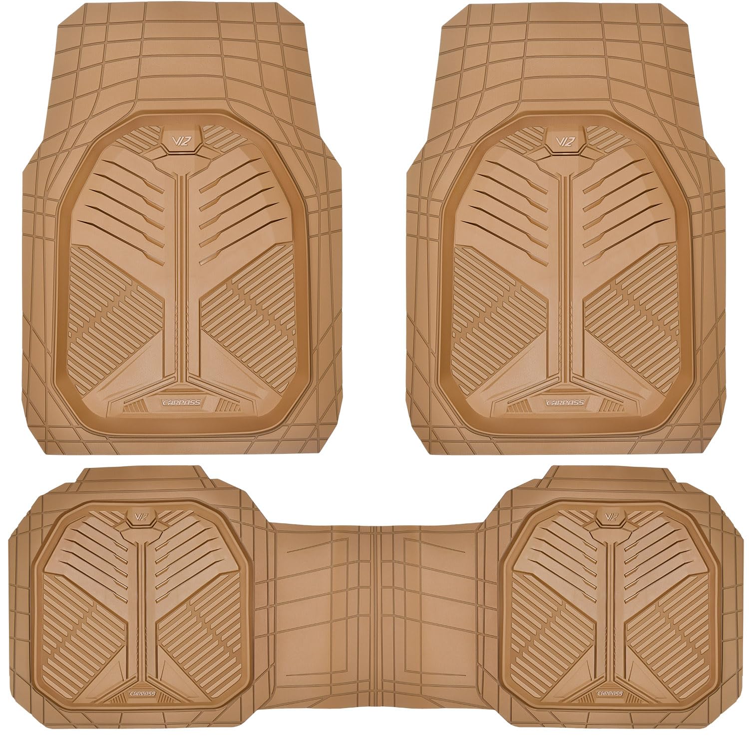 CAR PASS Heavy Duty Rubber Car Mats, Deep-Dish Odorless Car Floor Mats All Weather, Universal Trim-to-Fit for SUVs Trucks Sedans, Waterproof Anti-Slip, 3 Pieces V12 Black