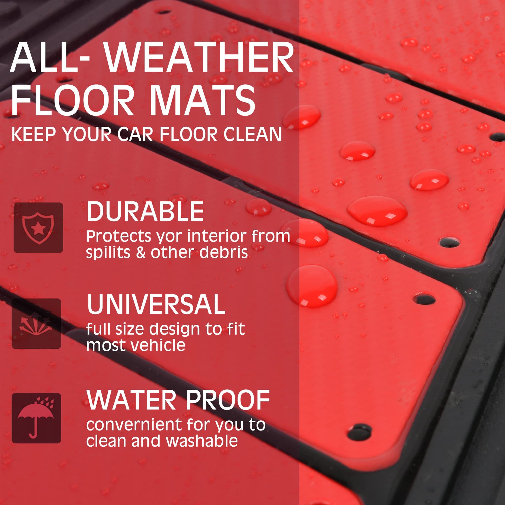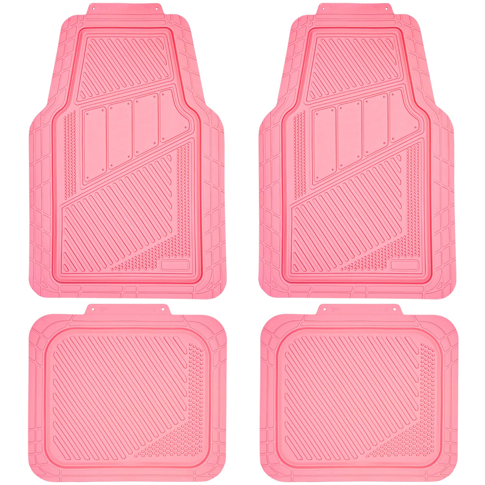 CAR PASS Heavy Duty Rubber Floor Mats Pink 4-Piece Car Mat Set - Universal Waterproof for SUV Truck, Durable All-Weather Mats,Car Women,Girly(All Pink)