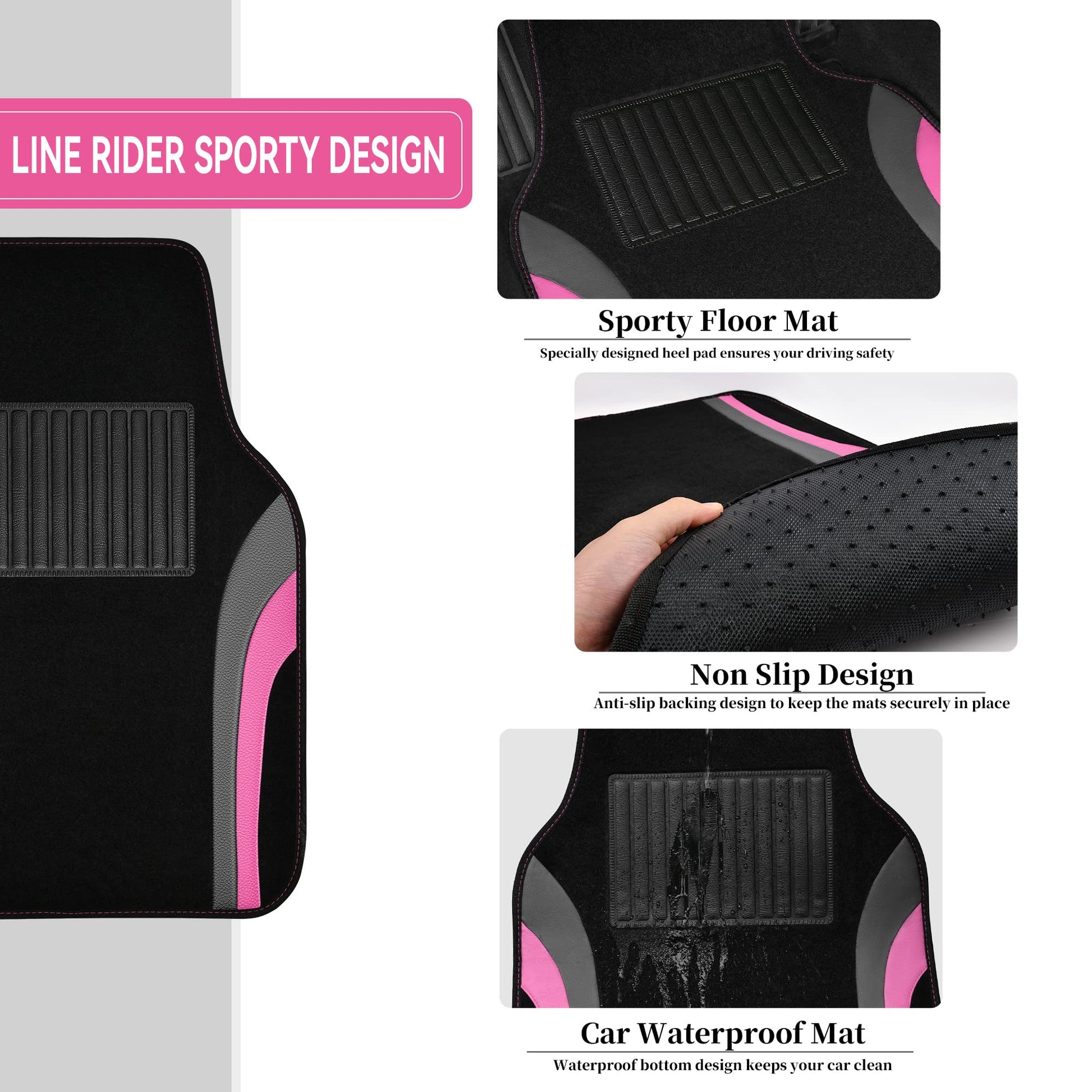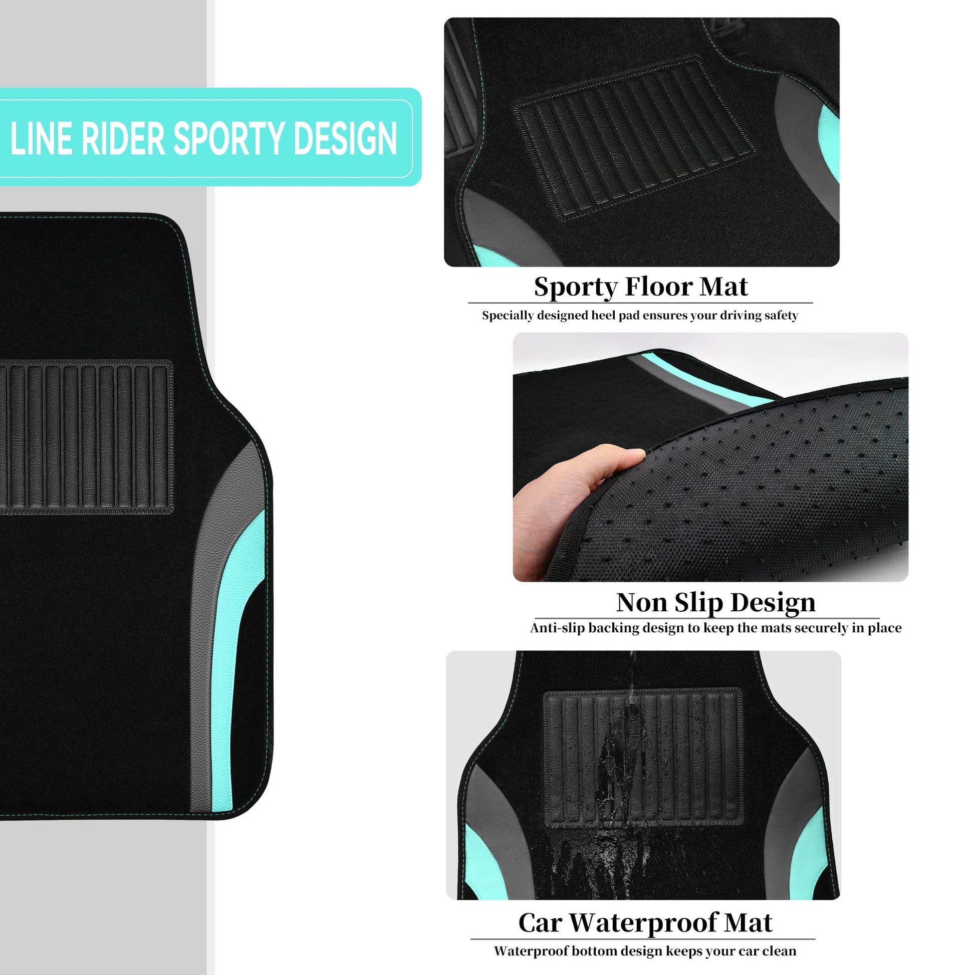 CAR PASS Universal Fit Colorful Sporty Car Floor Mats, Set Of 4