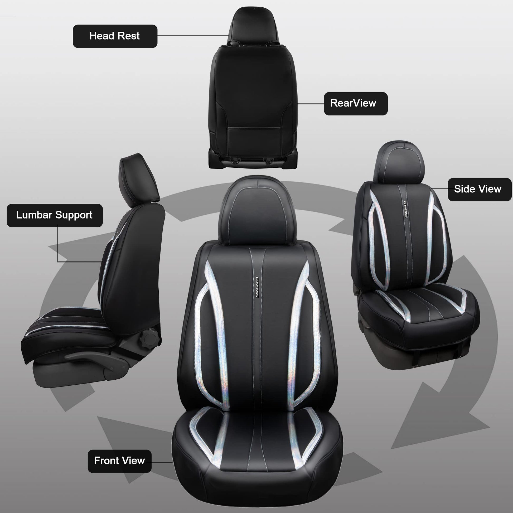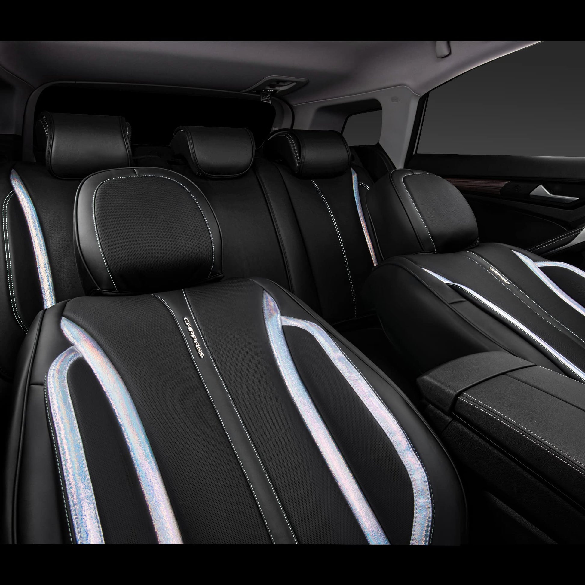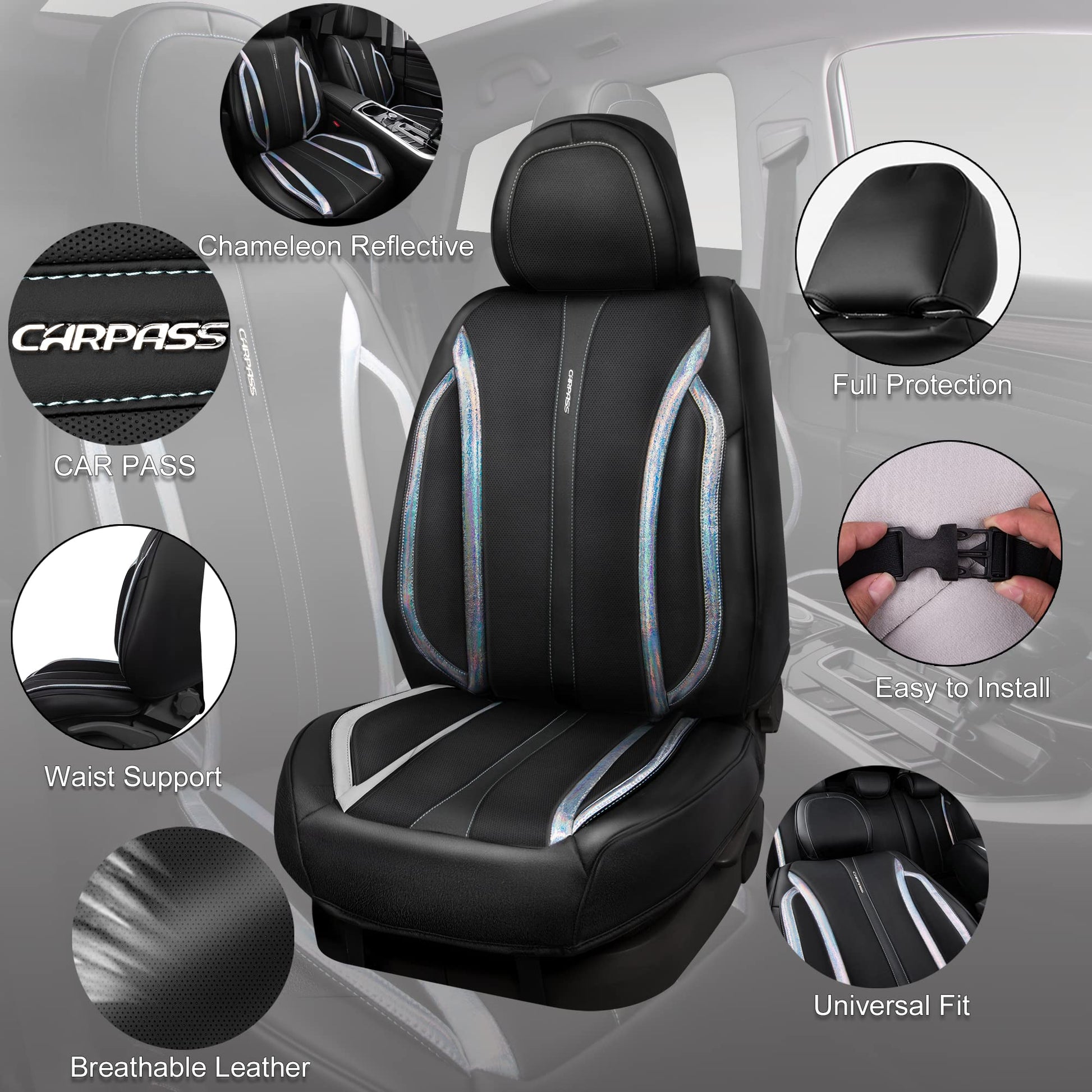 CAR Pass Nappa Leather Car Seat Covers, Durable Waterproof Luxury Universal for SUV Pick-up Truck Sedan, Anti-Slip Driver 5 Seats Covers Full Set with Backrest (Black Chameleon Iridescent Reflective)