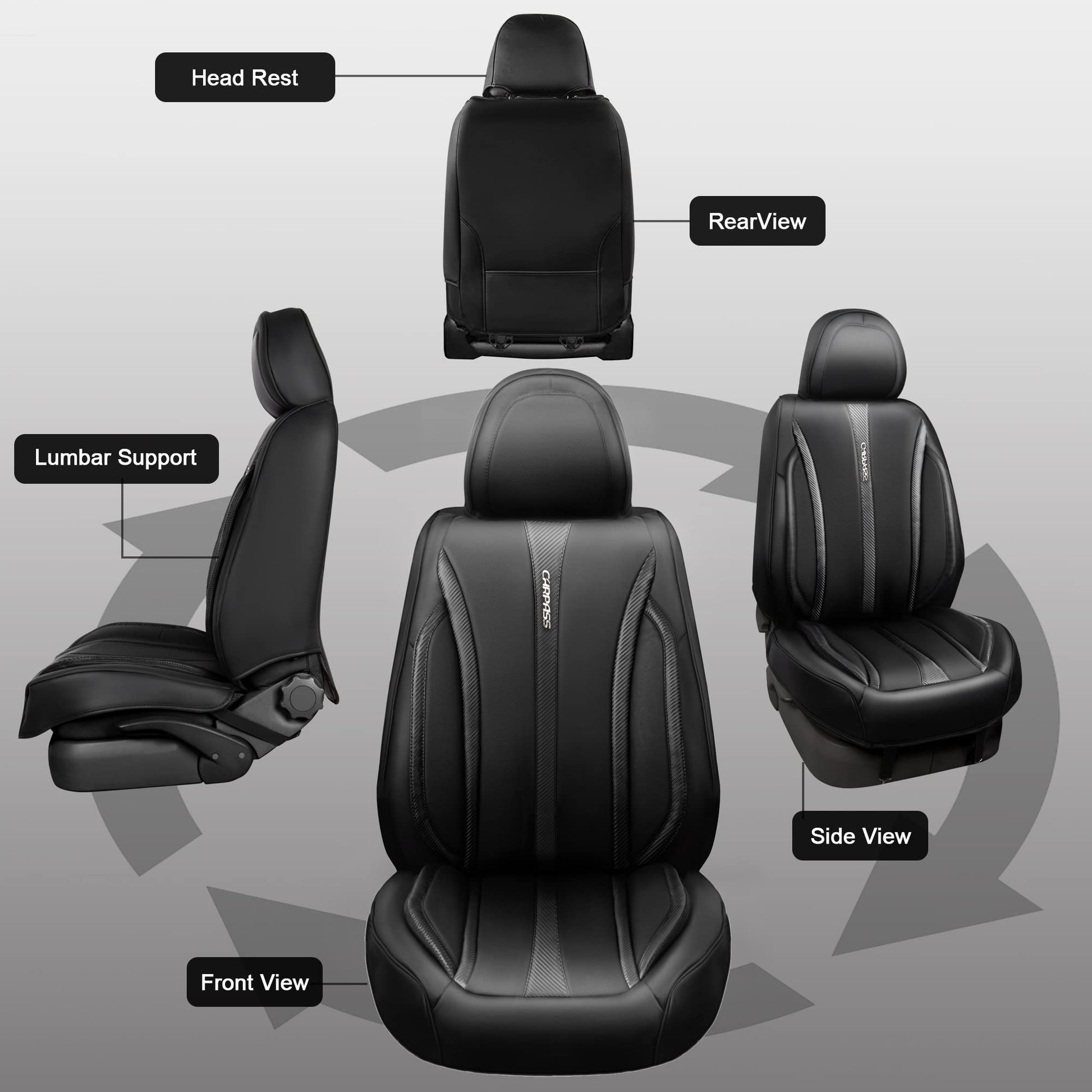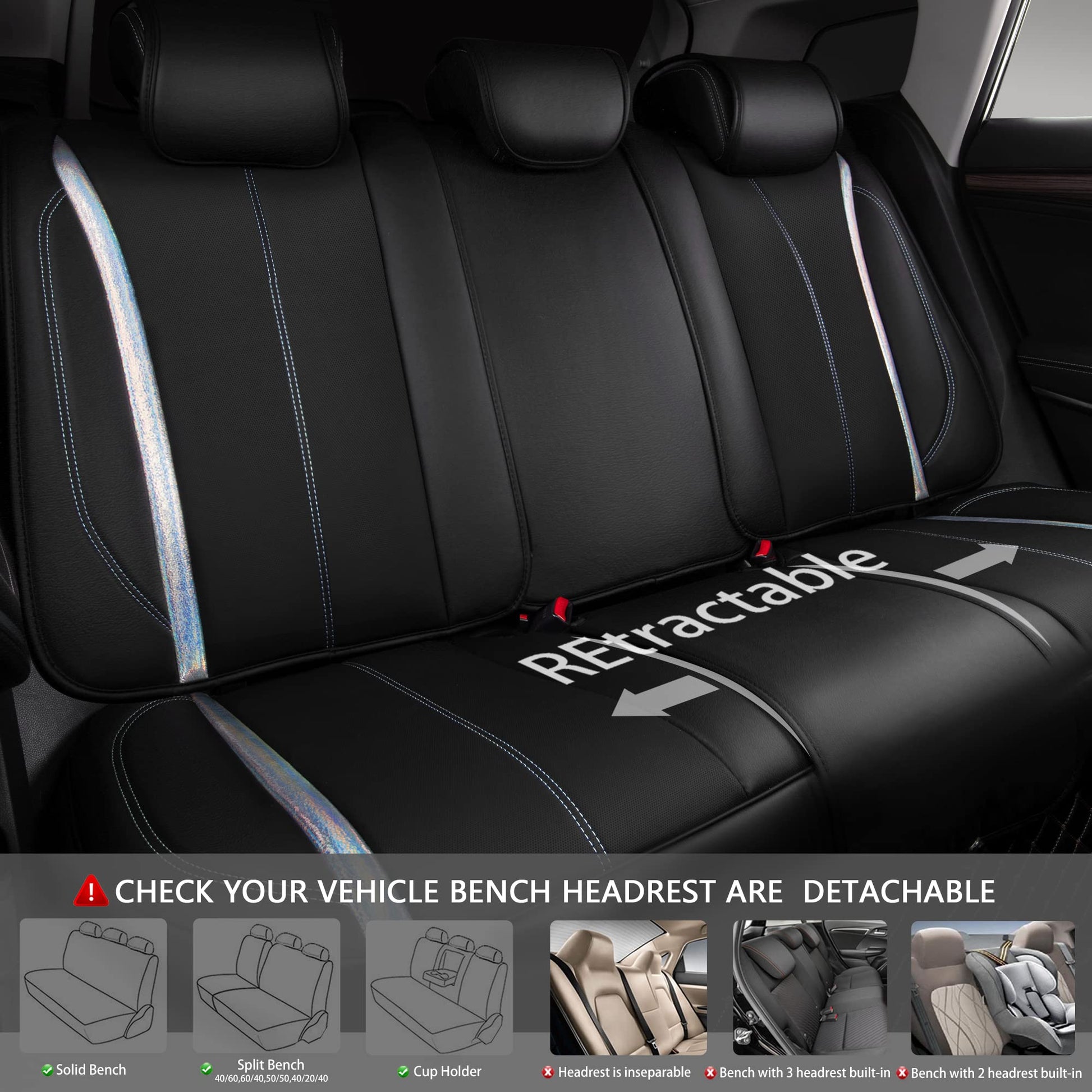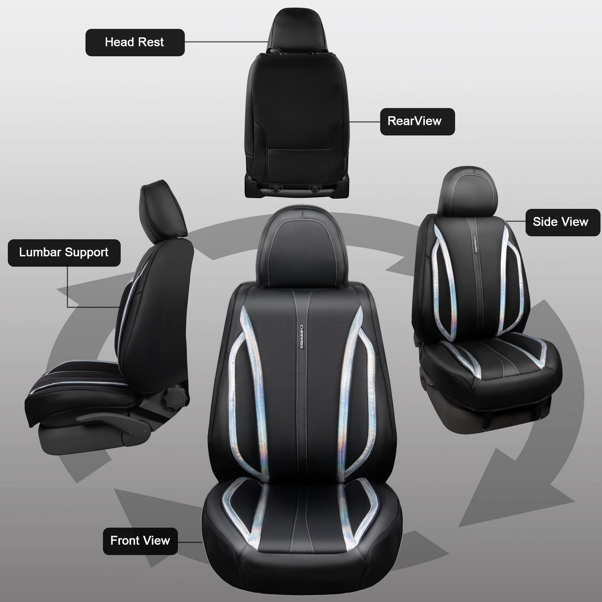 CAR Pass Nappa Leather Car Seat Covers, Durable Waterproof Luxury Universal for SUV Pick-up Truck Sedan, Anti-Slip Driver 5 Seats Covers Full Set with Backrest (Black Chameleon Iridescent Reflective)