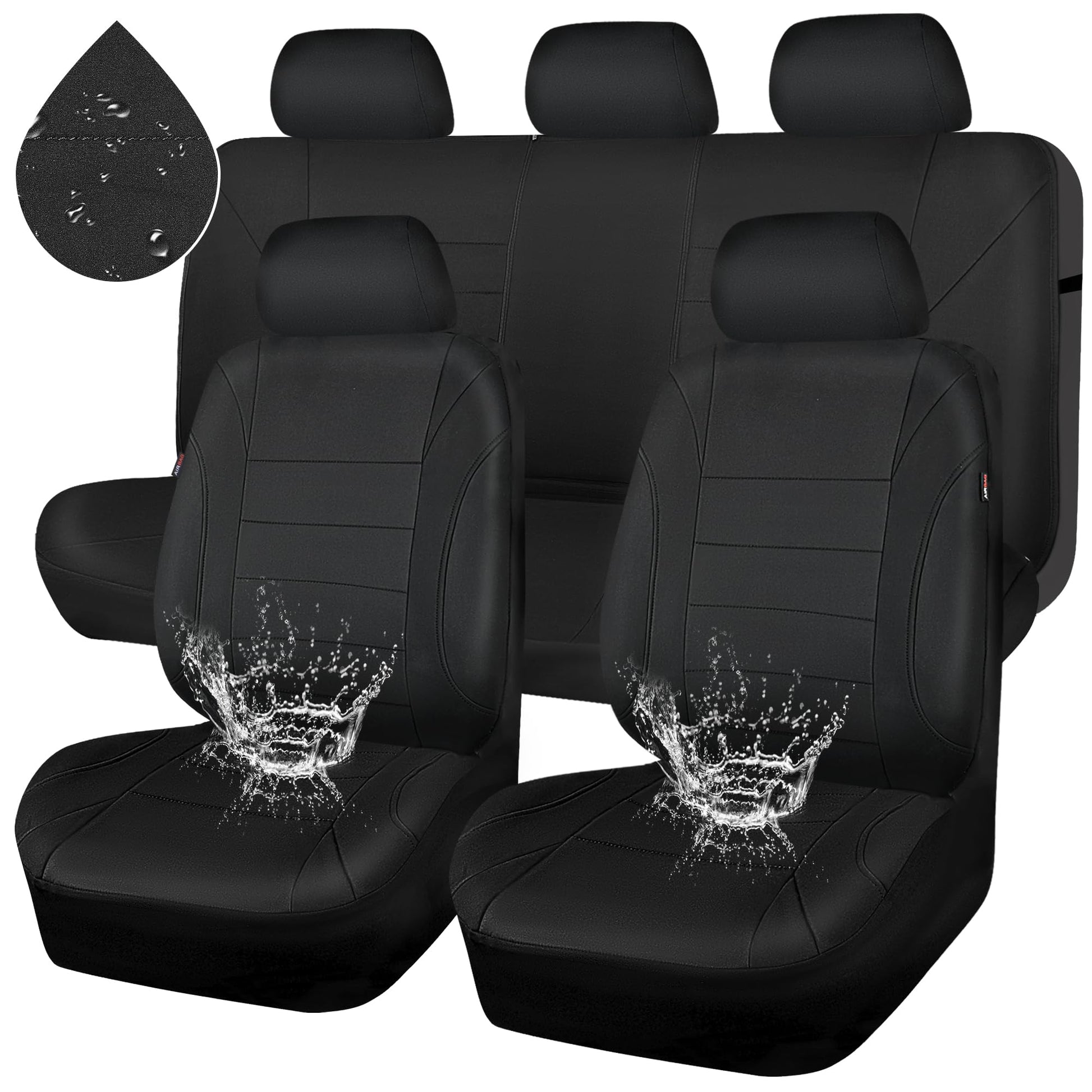 CAR PASS Neoprene Waterproof Seat Covers, Universal Fit Black Full Sets, Protective Interior Covers for Auto SUV, Vans, Sedans, Trucks