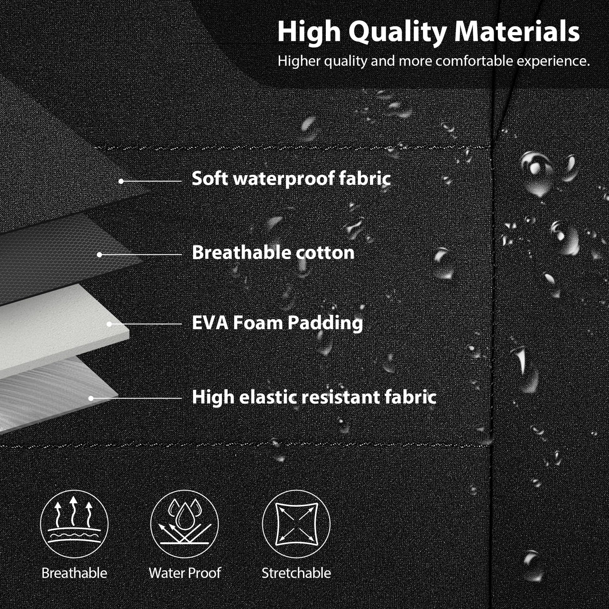 High Quality Neoprene Made100% Waterproof Neoprene: Keep it safe from all sweat, stains, sand, odors and dog hair. Since it’s made of premium waterproof neoprene, nothing will leak through.Especially during colder days. |