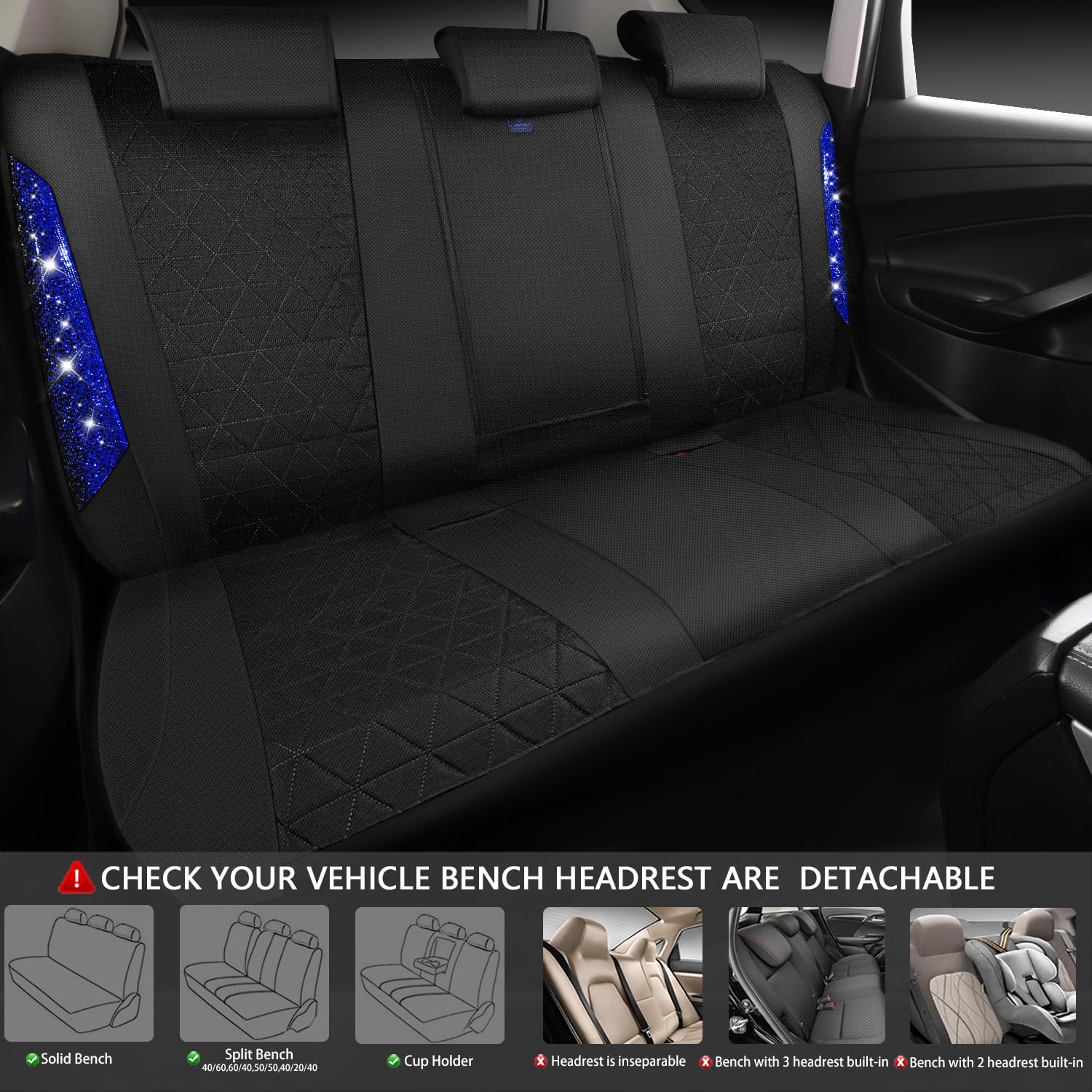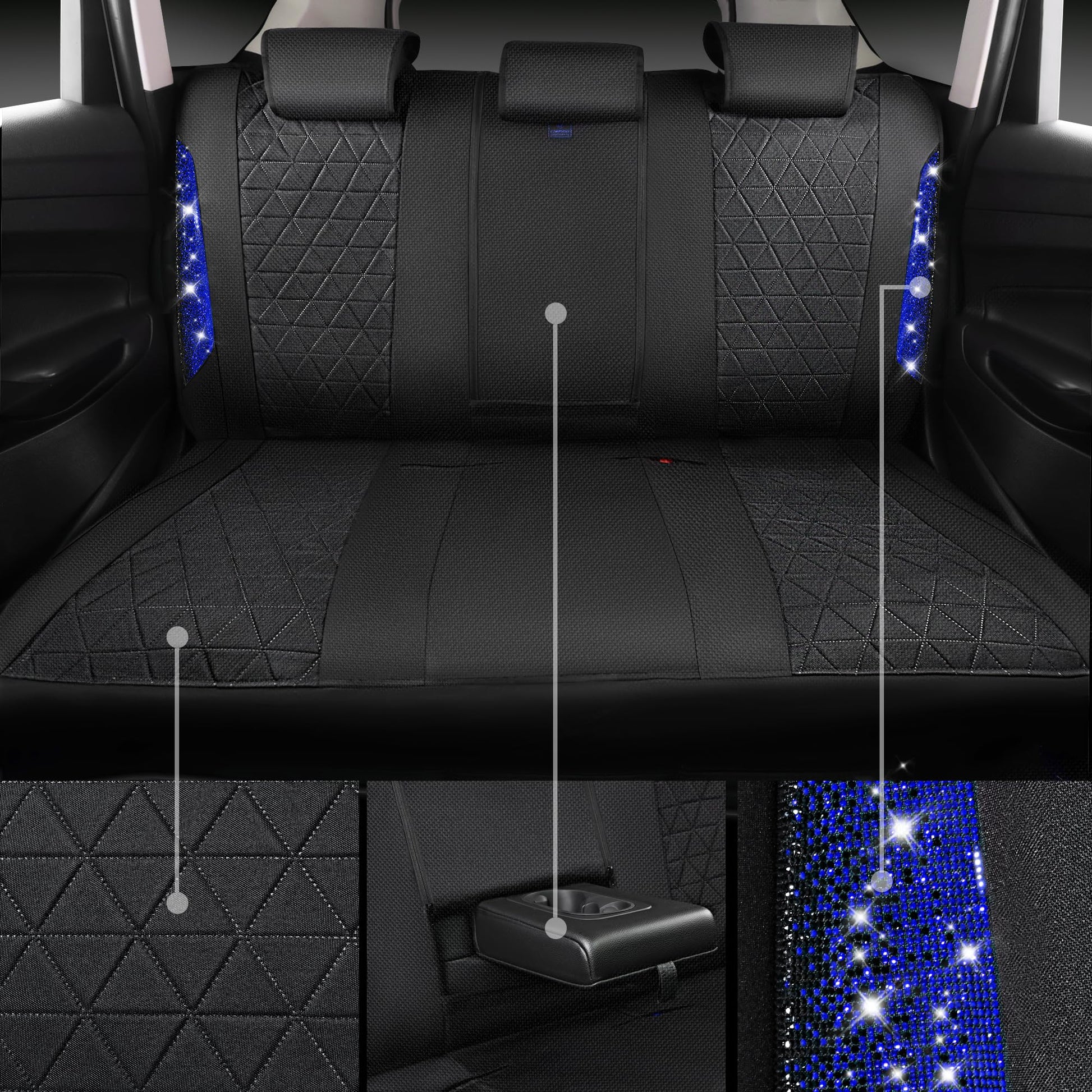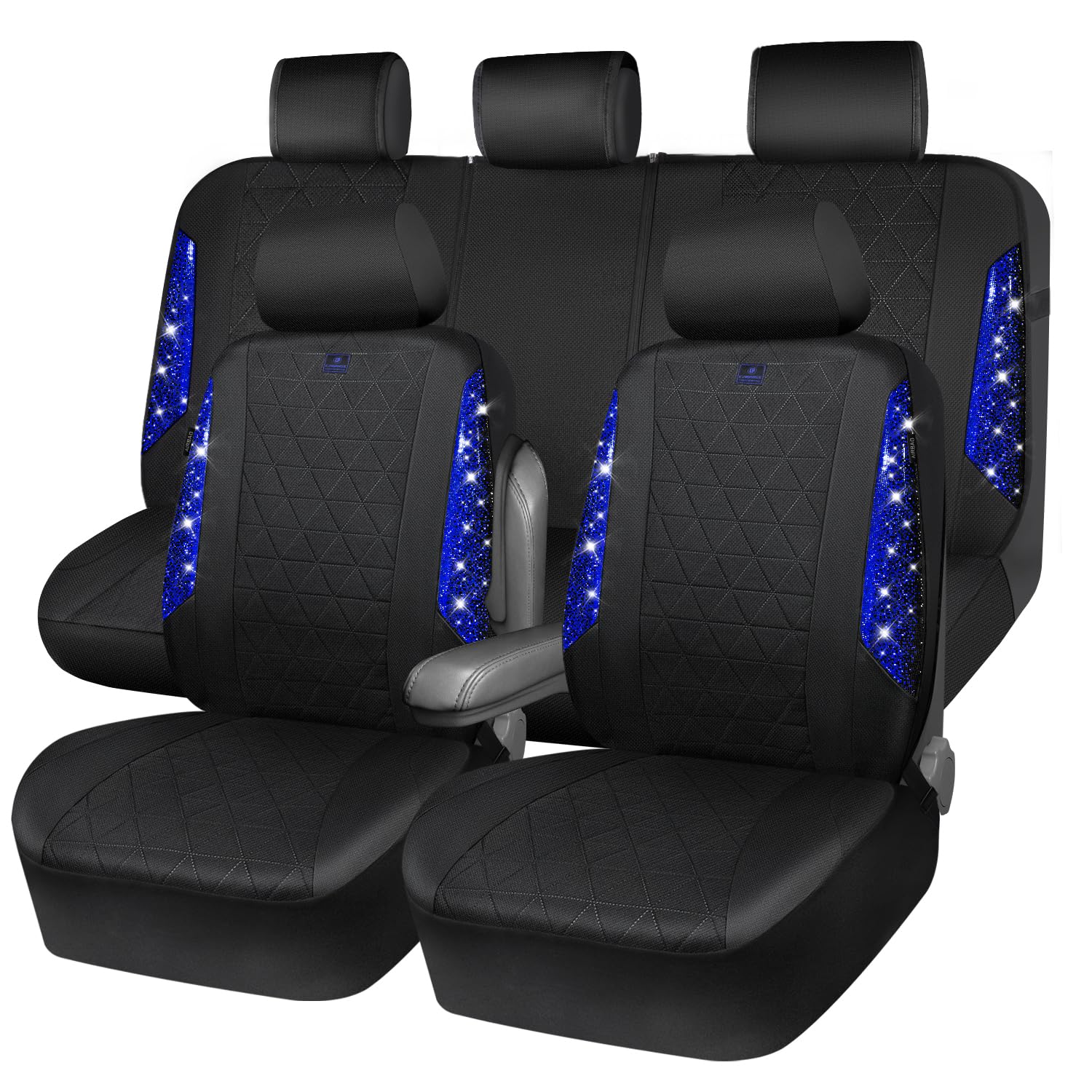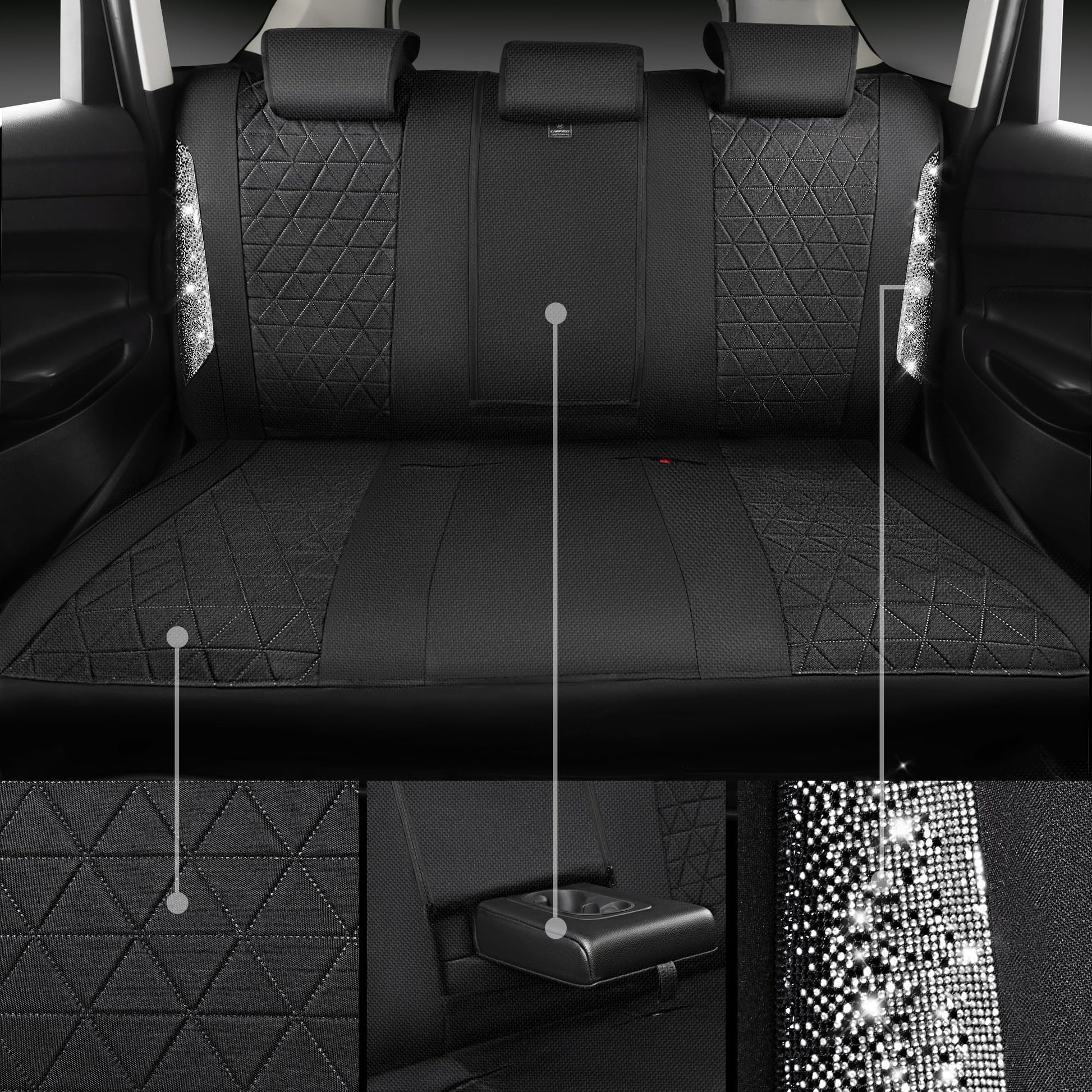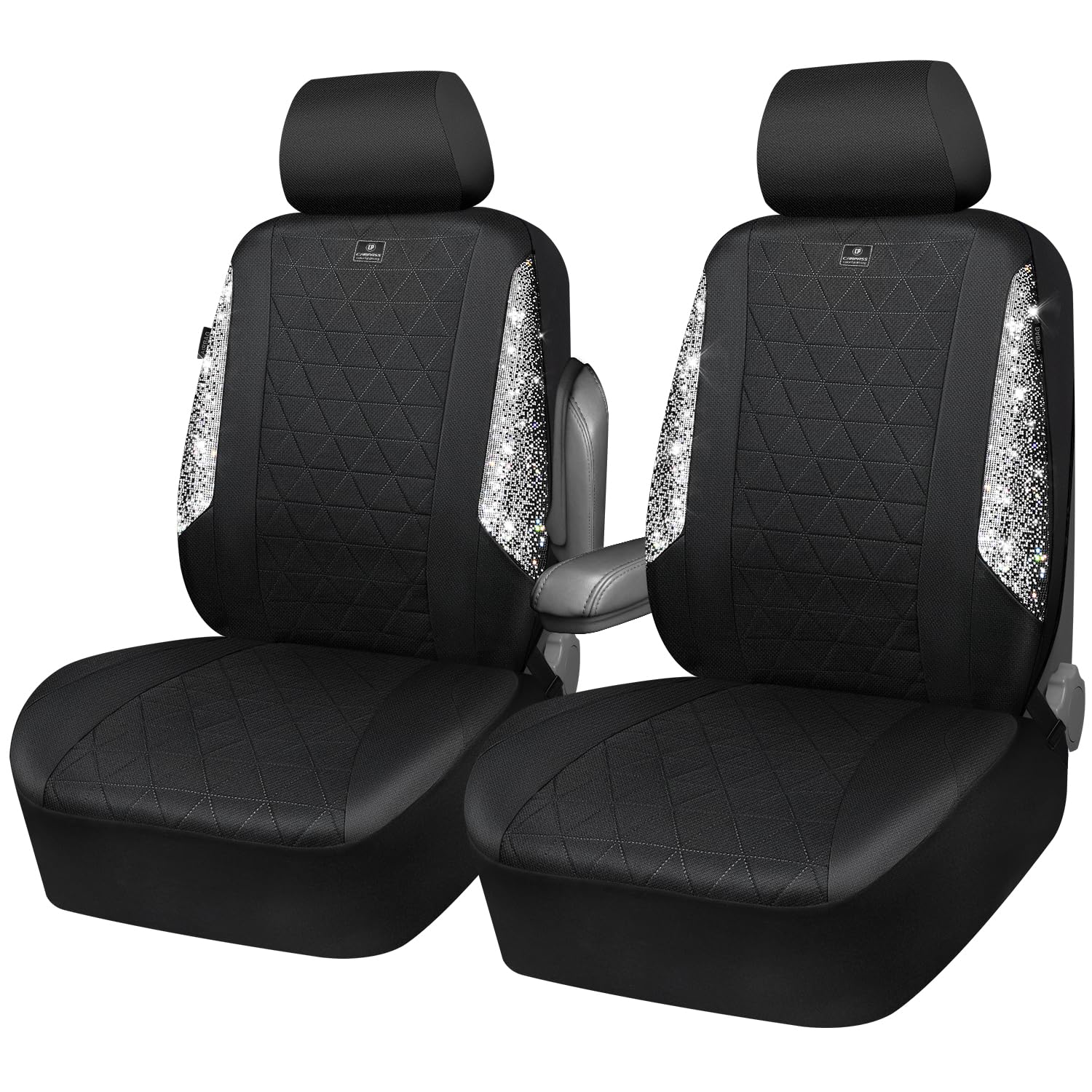 CAR PASS Oxford Bling Diamond Car Seat Covers 2 Front Interior Sets, Waterproof Shining Glitter Sparkly Crystal Universal Armrest Fit 95% Automotive Truck SUV Cute Women Girl, Black Red Rhinestone