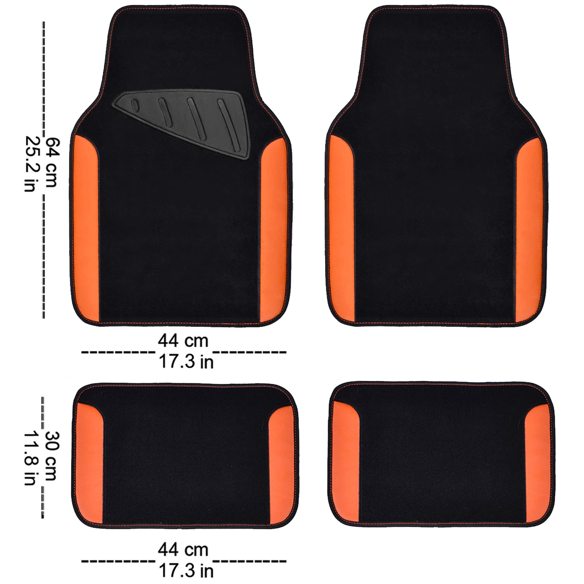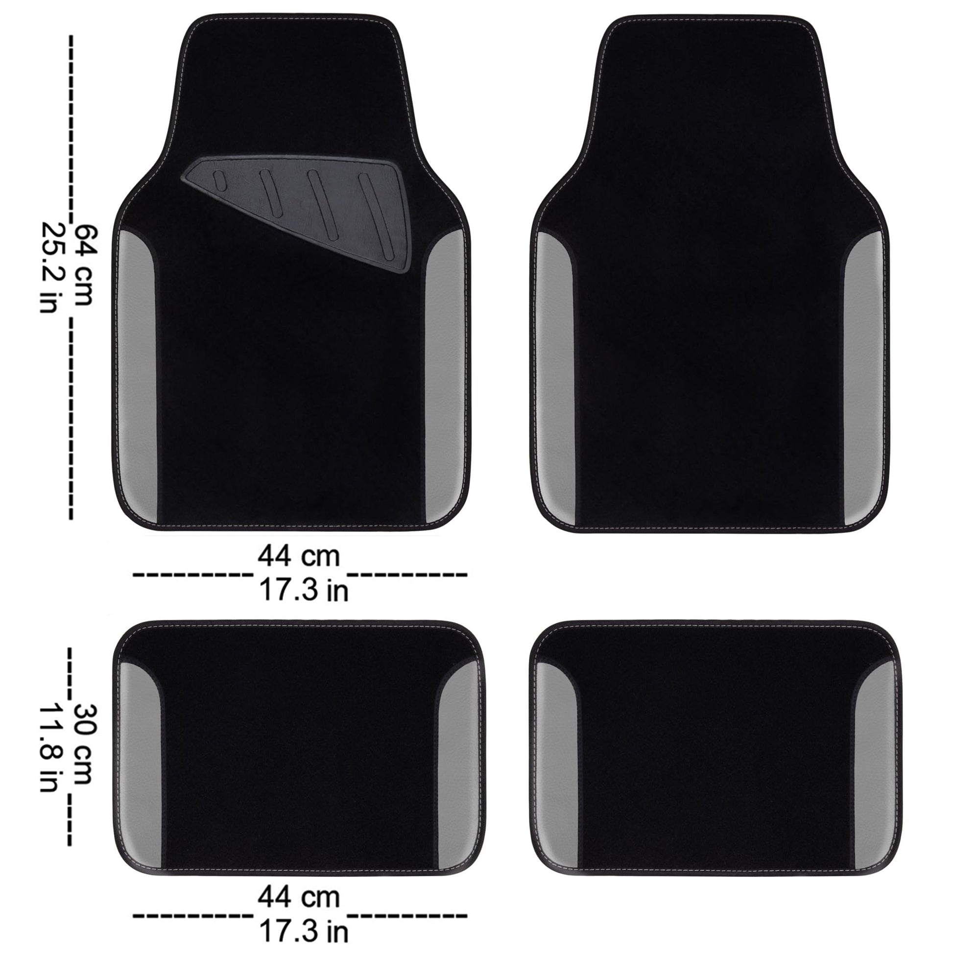 Set of two front floor mats and two rear floor mats. Perfect size to fit most sedans, crossovers ,SUVS,Trucks and Vans. Recommended for every car owners.