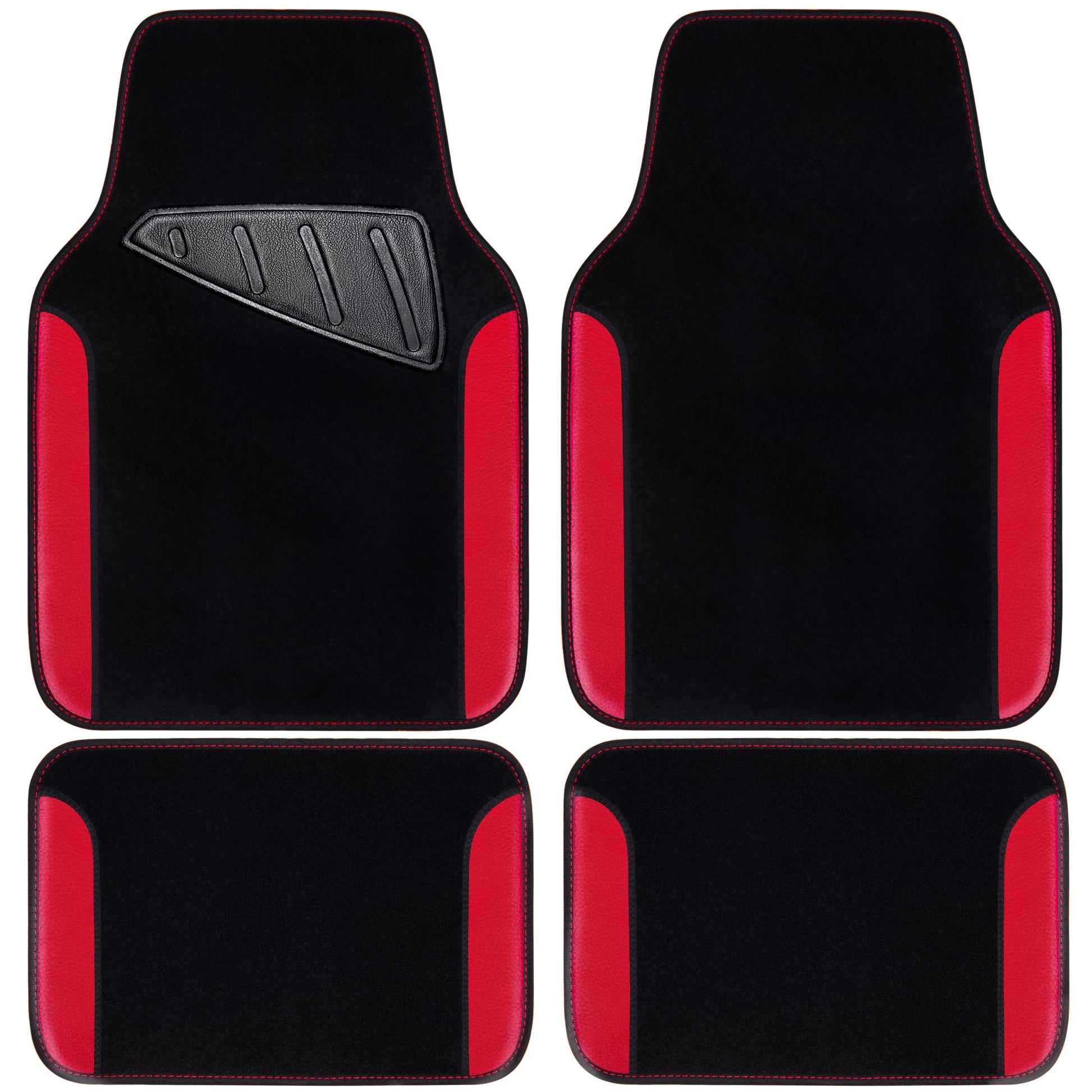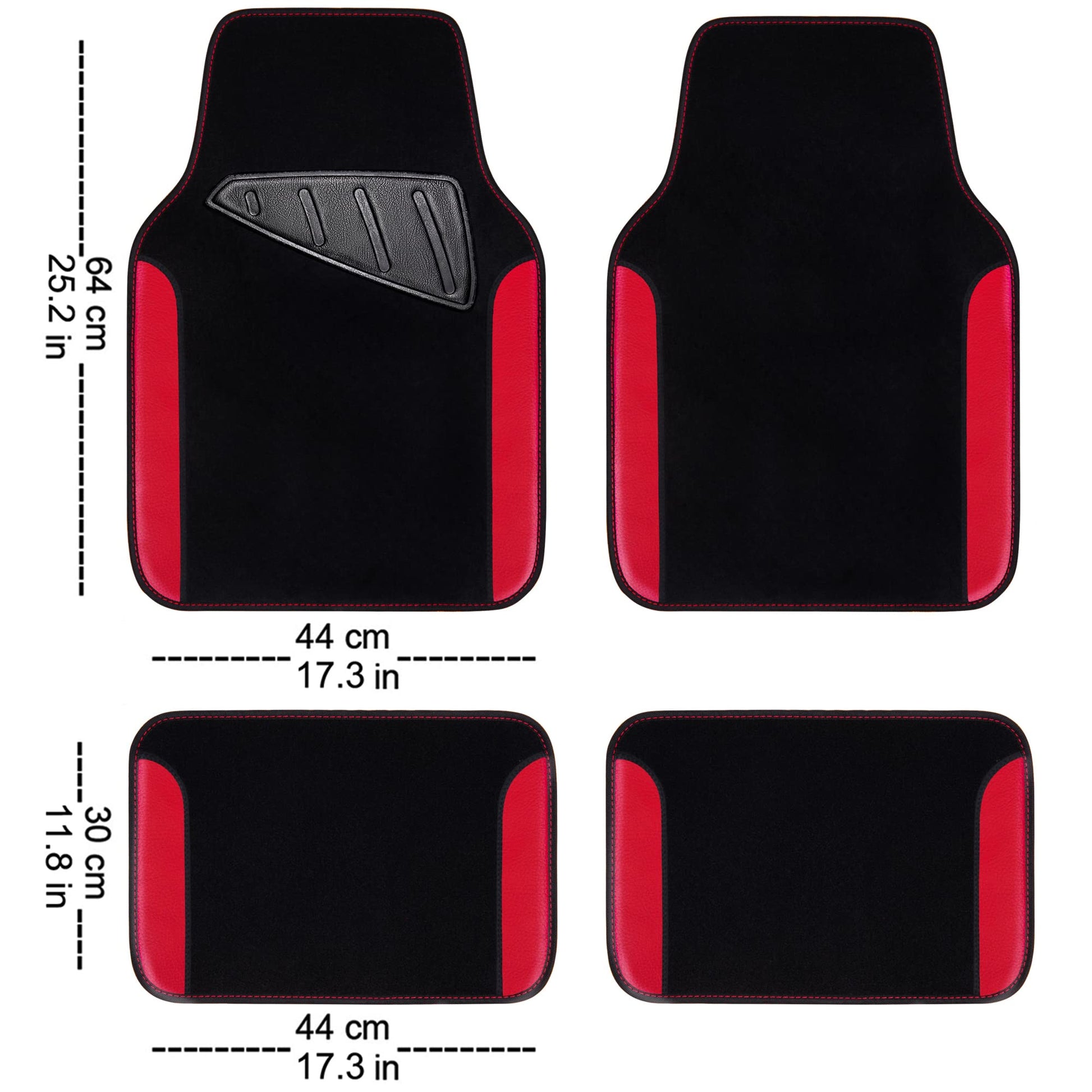 CAR PASS Rainbow Waterproof Universal Fit Faux Leather Car Carpet- Anti-Slip Nibbed Backing Floor Mats for SUV, Vans,Sedans,Trucks, Automotive Set of 4 for Women (Black with Red)