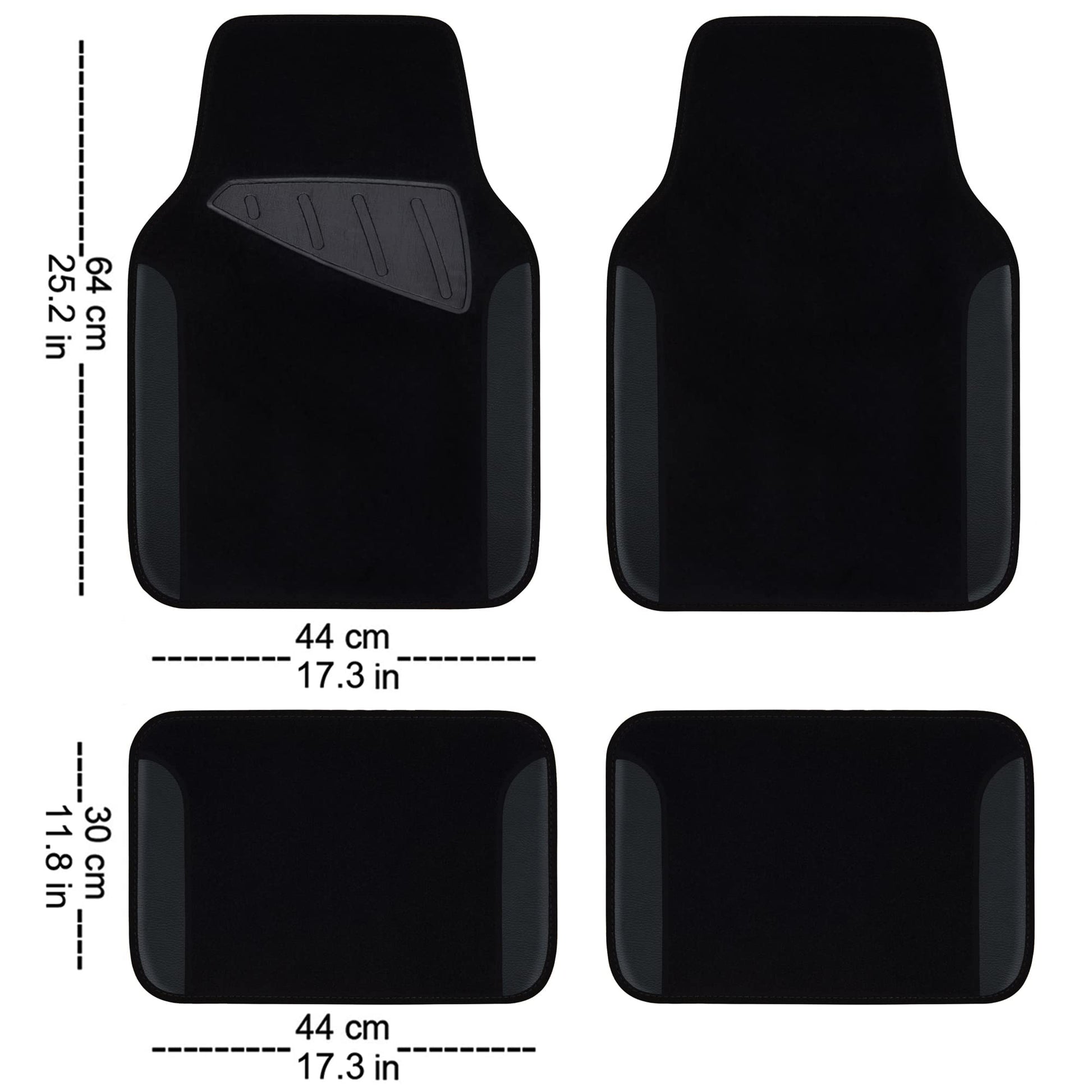 Set of two front floor mats and two rear floor mats. Perfect size to fit most sedans, crossovers ,SUVS,Trucks and Vans. Recommended for every car owners.