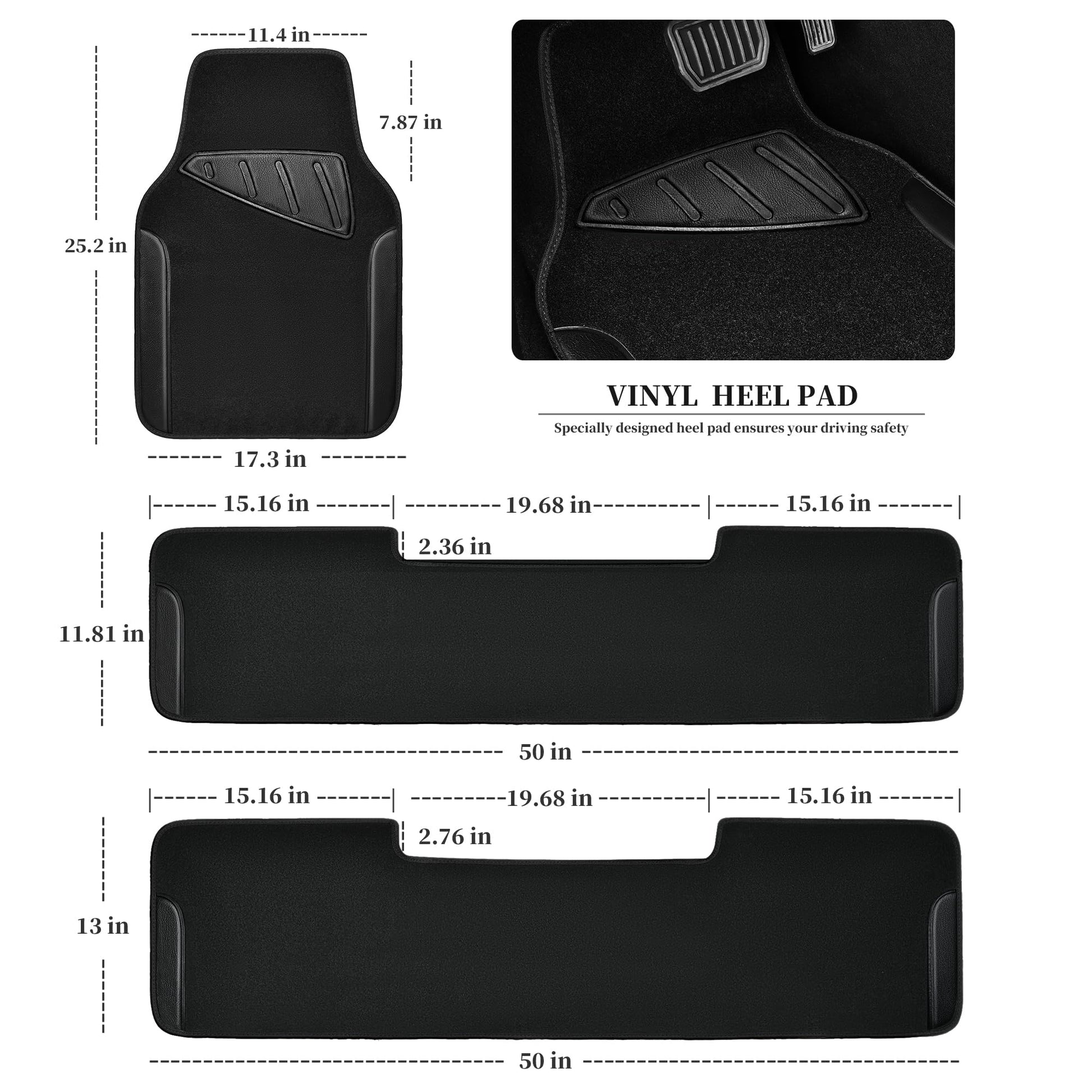 Universal Fit 4pc Car Floor Mats with Driver Heel Pad